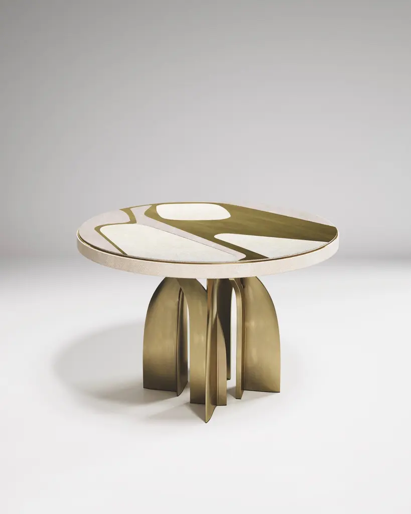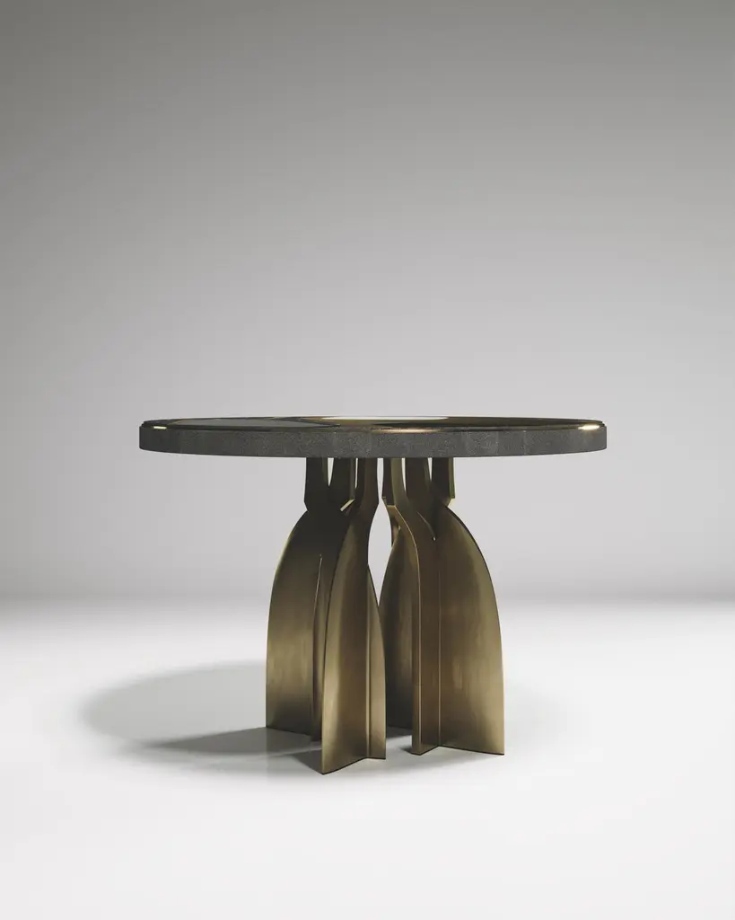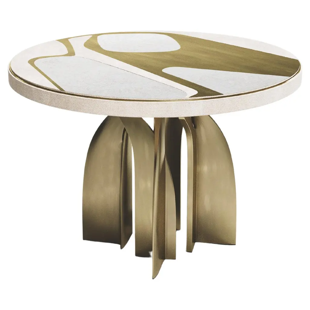 Shagreen Pattern Dining Table With Shell & Bronze Patina Brass By Kifu Paris