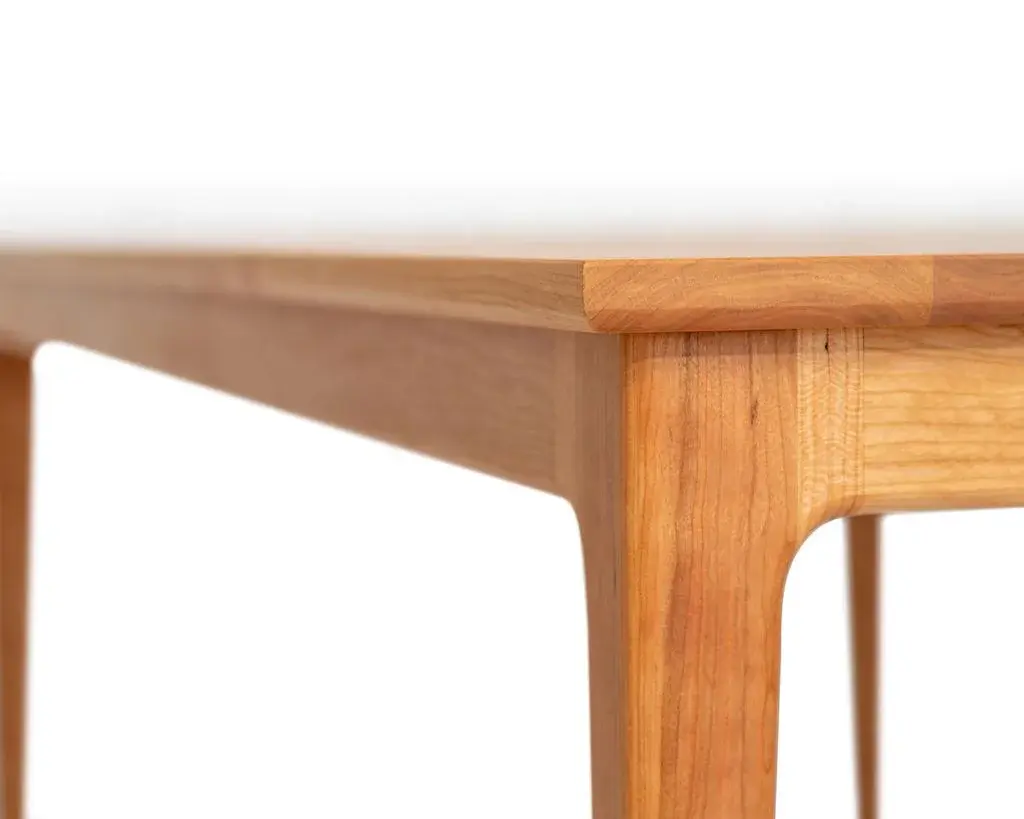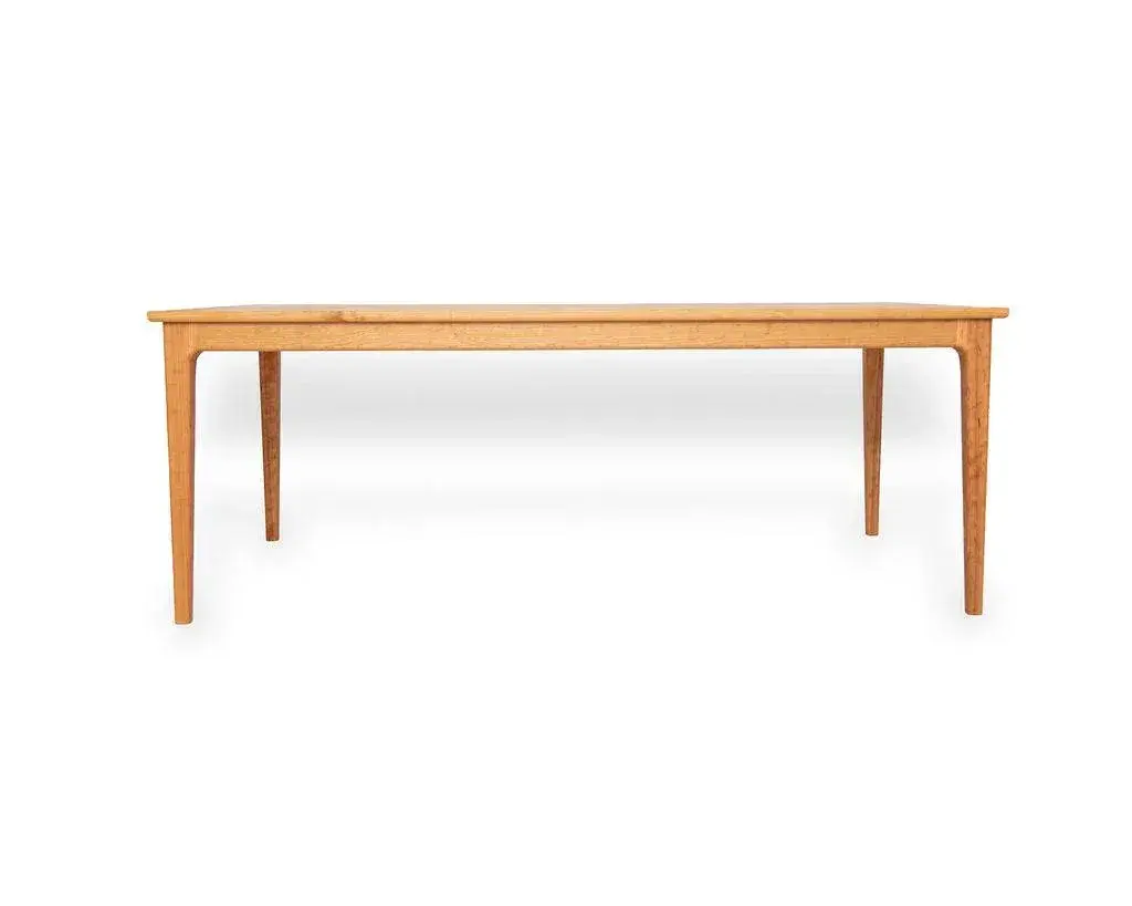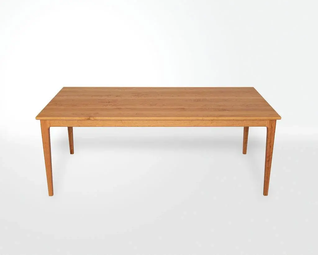 Featuring modern sculpted joinery paired with a traditional shaker form of clean lines and tapered legs, the Claire table is a blend of old form and new styling. We call the look shaker-modern. This piece is handcrafted from sustainably harvested North American cherry. Finished with voc-free, all-natural, hard-wax oil. Shown in Cherry