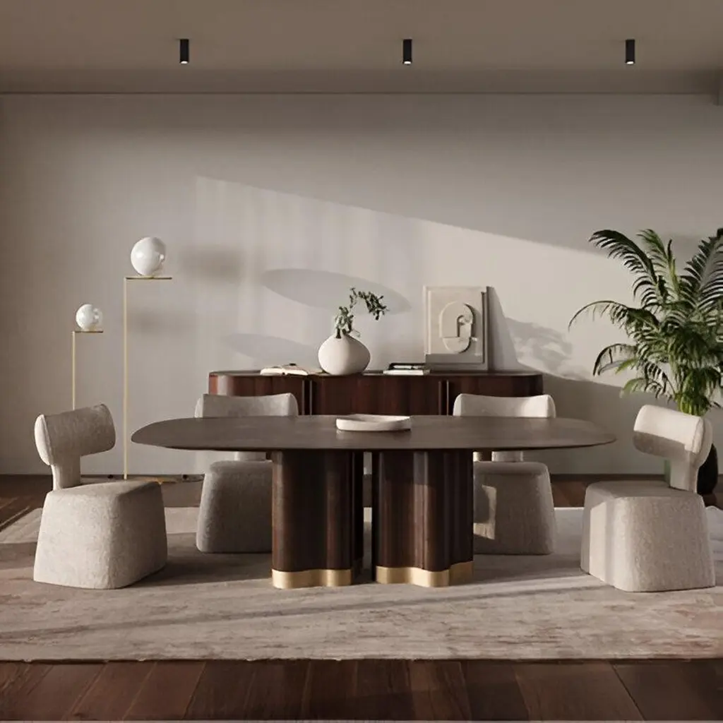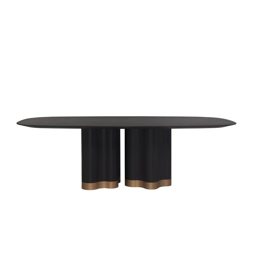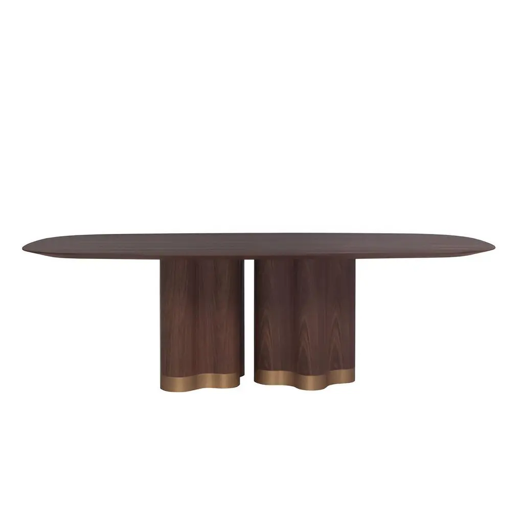 Stylish and versatile piece that combines innovative design with high-quality materials:Key features includes:Base: The base is crafted from four curved plywood elements to create a visually appealing and unique sculptural pedestal.Top: The tabletop is available in a variety of solid wood and marble colors and finishes. The combination of the sculptural base and the choice of premium wood for the top gives it a sophisticated and modern look.Customization:The customizable nature of the tabletop and base materials ensures that it can complement a wide range of interior styles and color schemes.Whether used in a formal dining room or a more casual setting, the table's design and quality construction make it a versatile addition to any home.Quality and Craftsmanship:Handcrafted with attention to detail and a commitment to high-quality materials and construction techniques.Please contact us if you have any questions about customization and pricing. We will be glad to check with the factory’s technical team if sizes, finishes, and colors can be customized. We do our best to expedite production and to ship and deliver product within the listed lead time, however current lead times might be longer due to global shipping backlog and delays. These delays are out of our control and cannot be a reason to cancel an order.