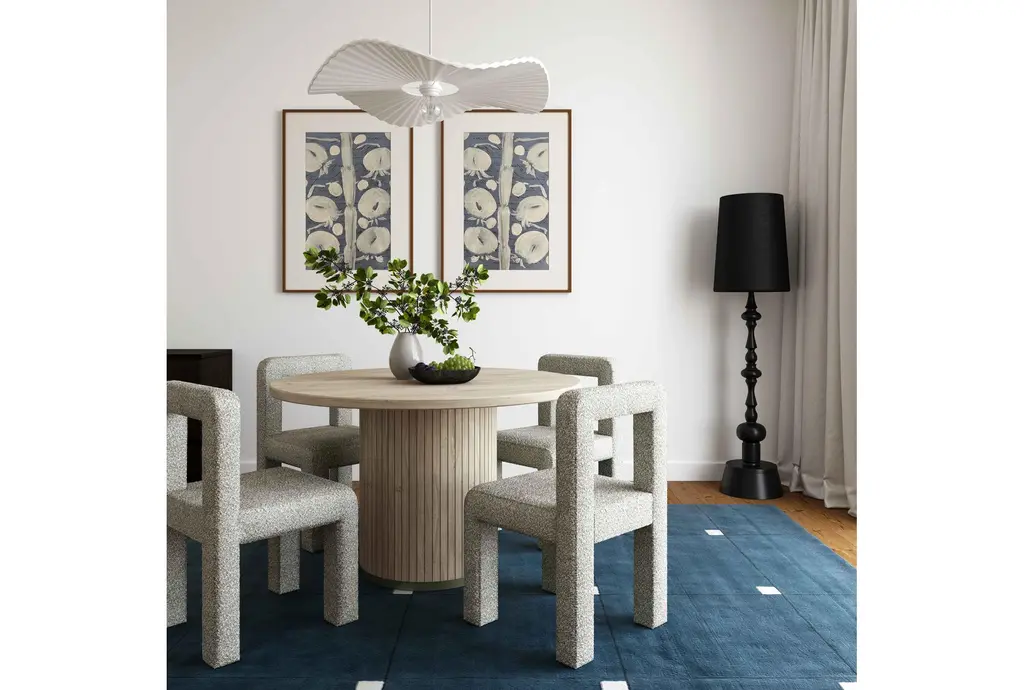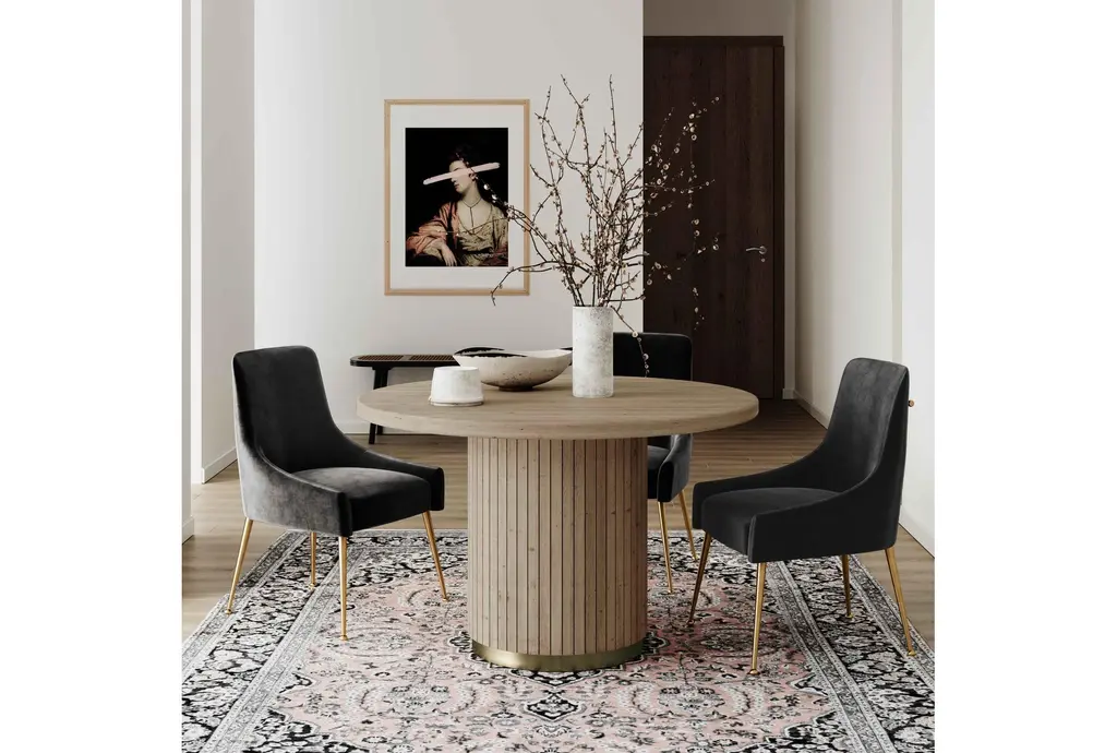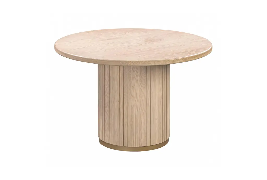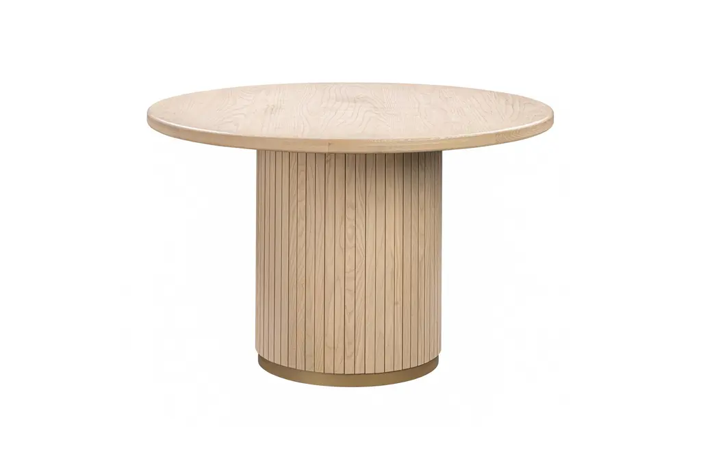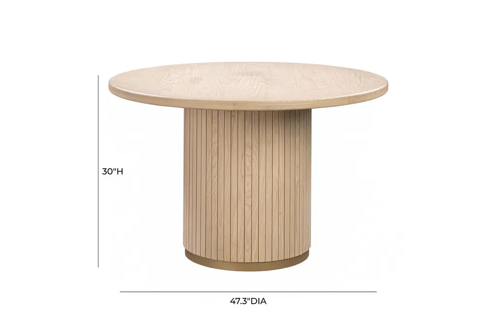 The Shelby Oak 48" Round Dining Table is a modern, long-lasting piece of furniture, perfect for your dining room. Its natural oak finish gives it a warm, brown color that complements any decor.