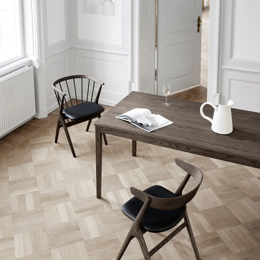 Sibast Dining Table No 2 takes its inspiration from the side table No 1 by Helge Sibast designed in the late 1950s. It is designed by Anna and Ditlev Sibast together with the daughter of Helge Sibast, who like the father, is a skilled architect, cabinet maker and the mother to Ditlev Sibast. They designed the table with a clear vision to create a simplistic and sustainable dining table which matches the design of the chairs by Helge Sibast. “It has never been my grandfather's intention to hide his chairs under a table. They need to be placed by the table. Therefore a simplistic and narrow table design underlines the beauty of the chairs and makes a great combination - where functionality meets aesthetics". Extension panels are also available.