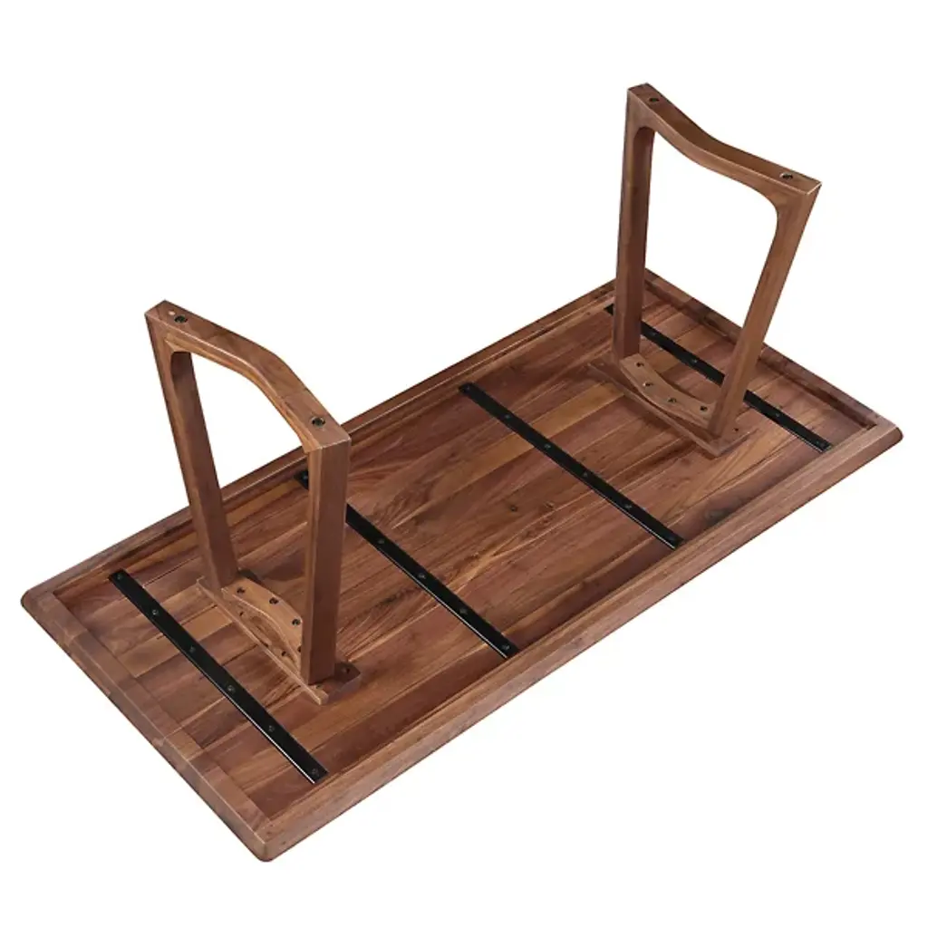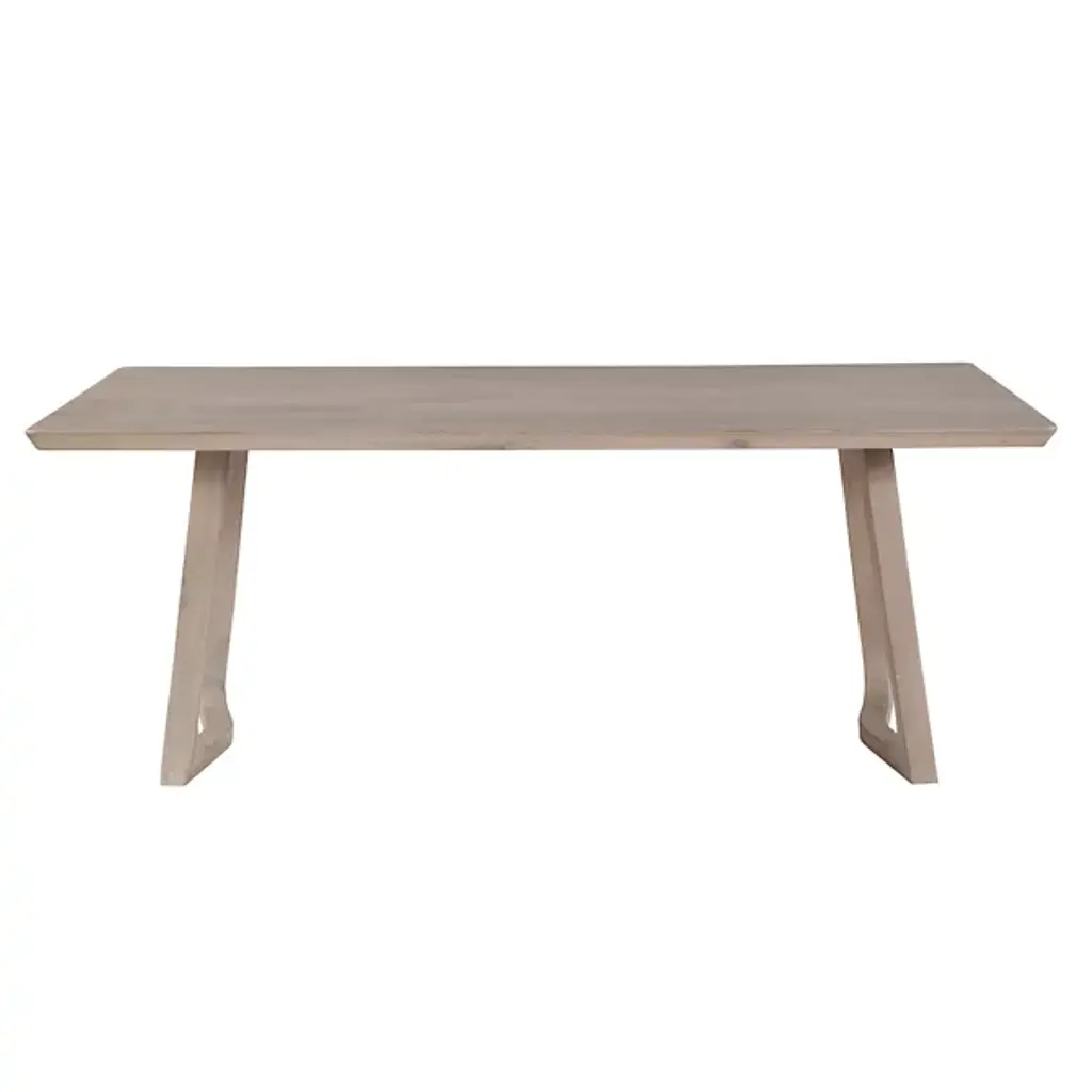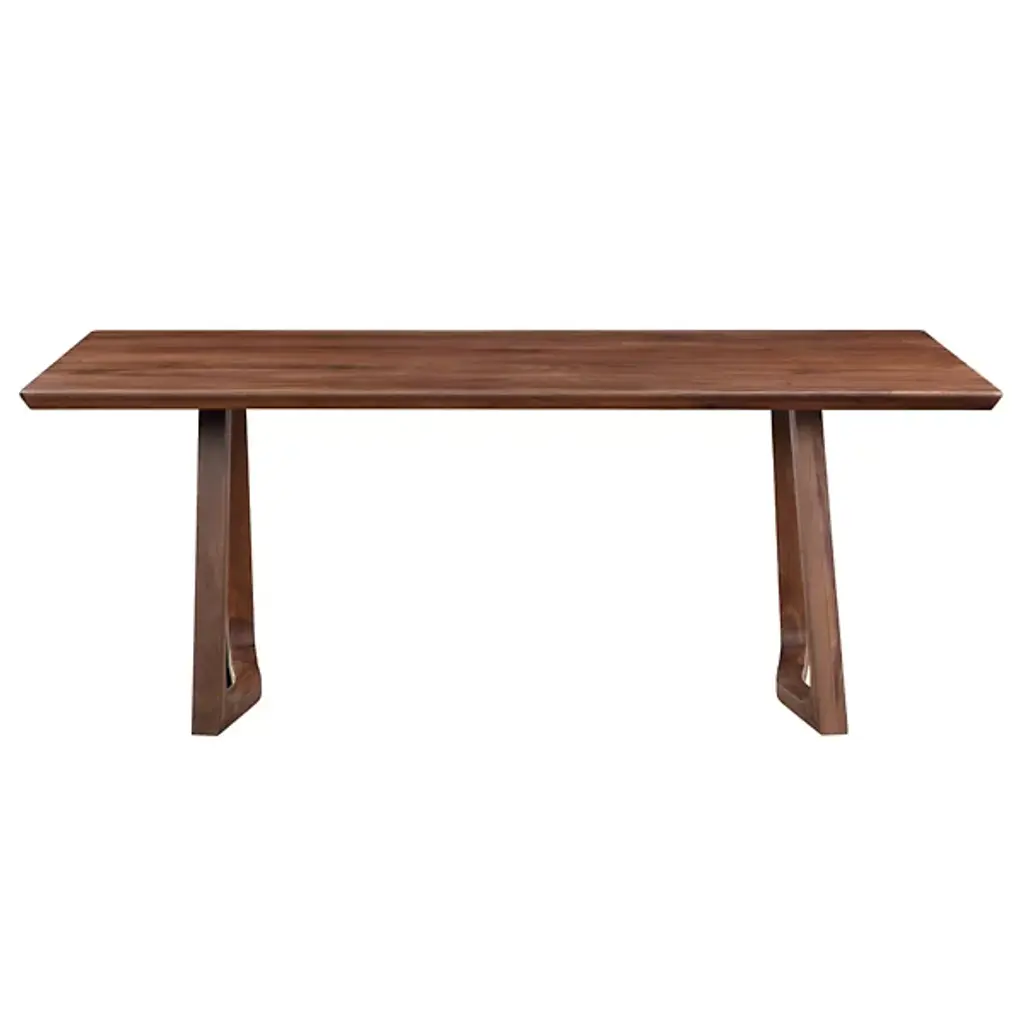 The Silas Dining Table from Moe's Home Collection adds a balanced, modern appeal to indoor dining spaces. Made in Vietnam and ascending from two flaring wooden bases for added stability, it ascends to a round-cornered rectangular top that offers ample space for dining. The wood grain is on full display, transforming its surroundings with an eloquent, open design that can play well with many design styles.