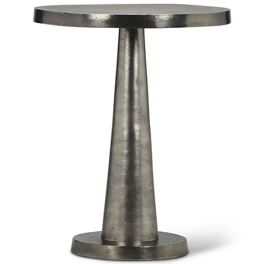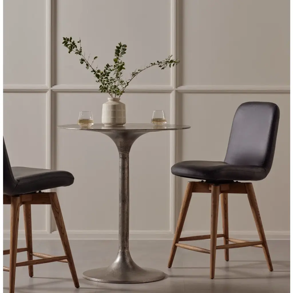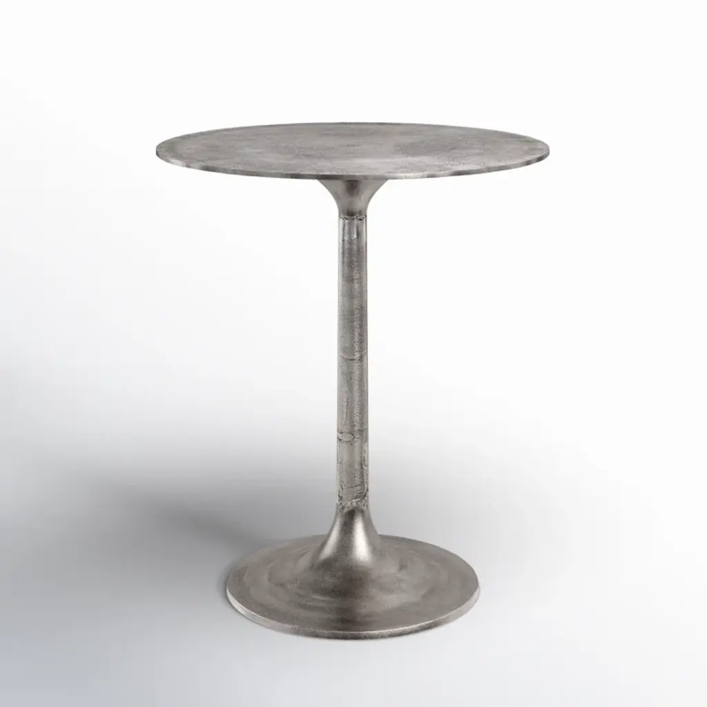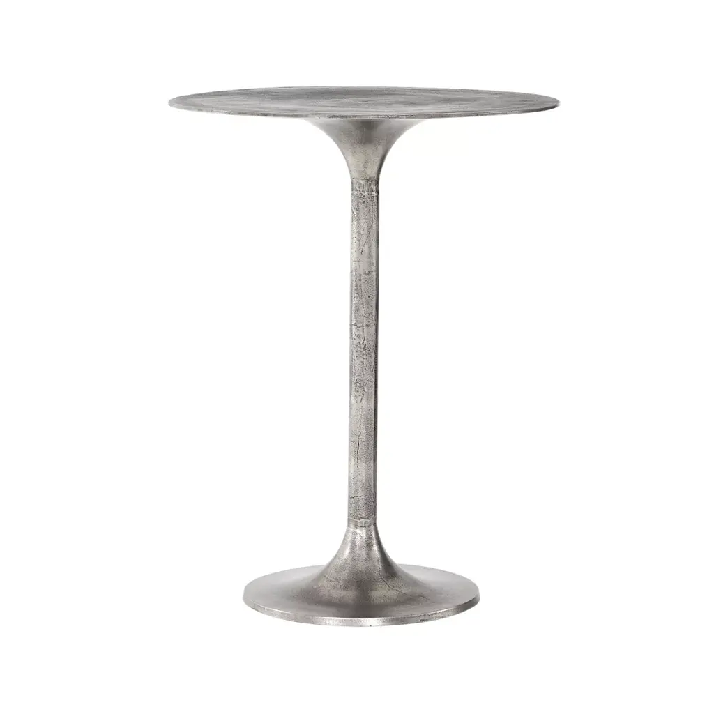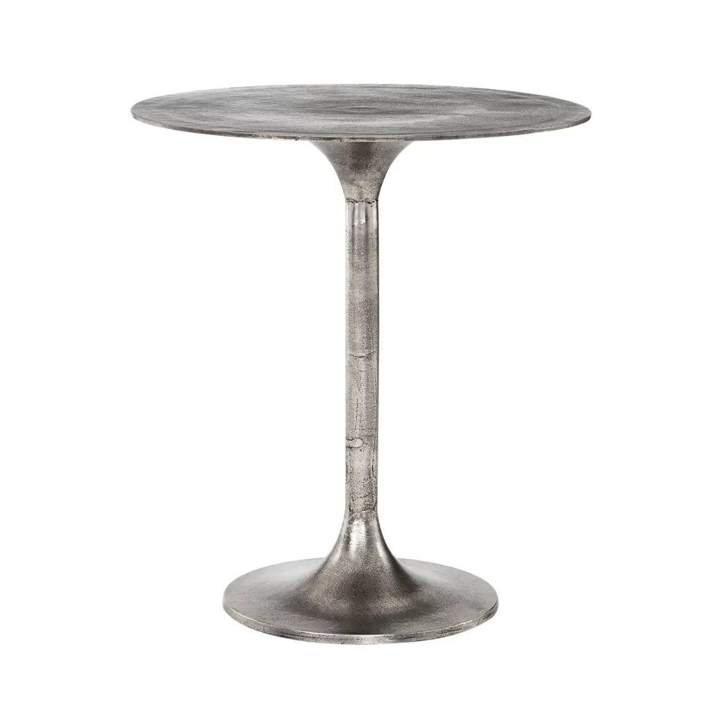 Classic shaping in textural cast-aluminum makes for a modern pub table. Finished in antique rust to bring out alluring highs and lows. Great indoors or out — cover or store indoors during inclement weather and when not in use.