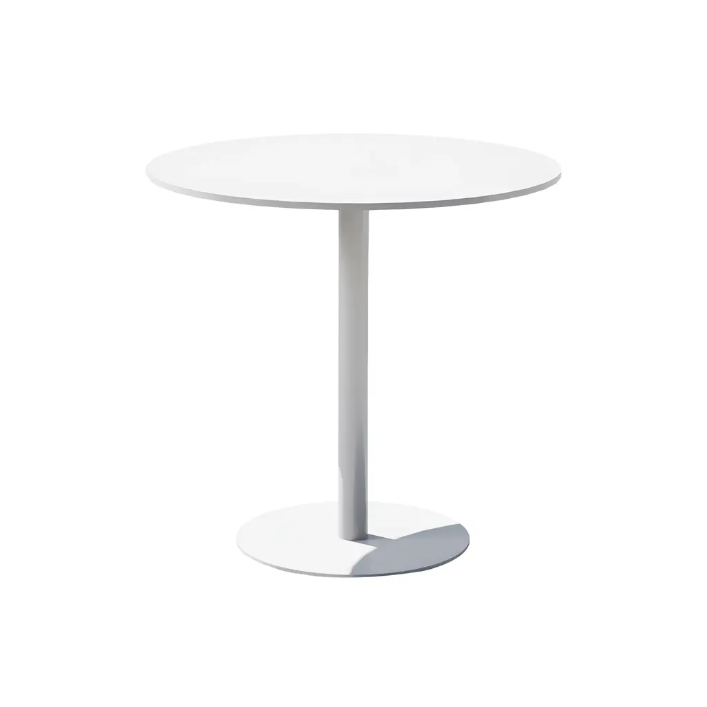 This dining table features a round aluminum top and a sturdy powder-coated steel base, designed for both indoor and covered outdoor use. Its compact build makes it well-suited for restaurants and residential spaces. The table meets industry standards for safety and performance with ADA compliance and BIFMA certification. Plastic glides on the feet help protect floors from scratches. Available in 4 colors and 2 sizes.
