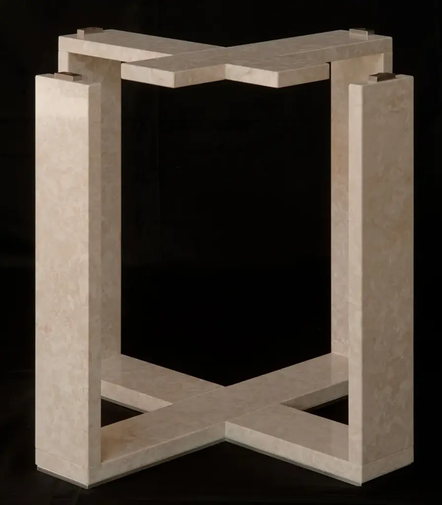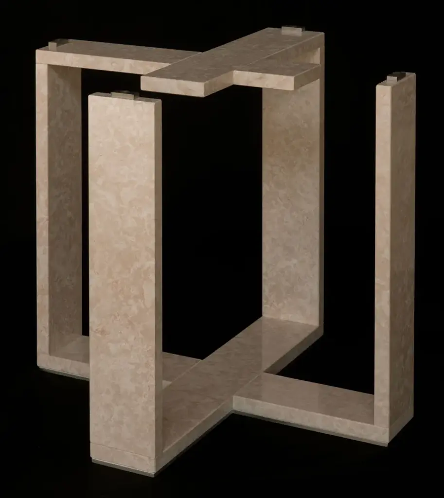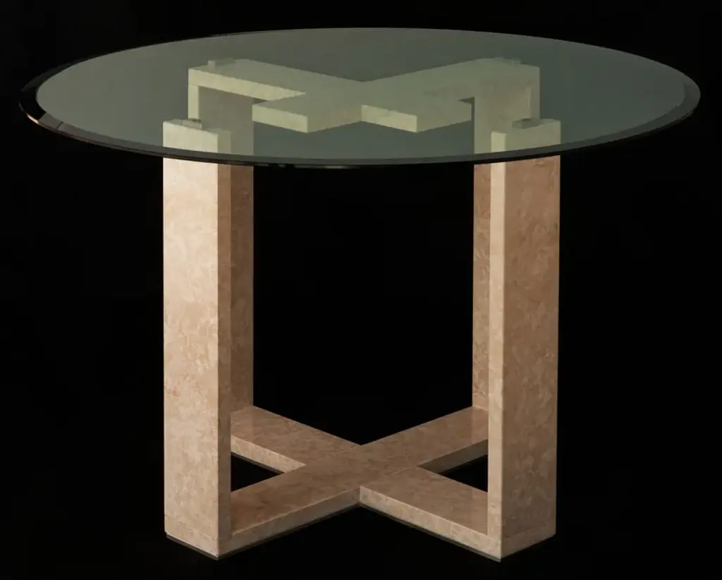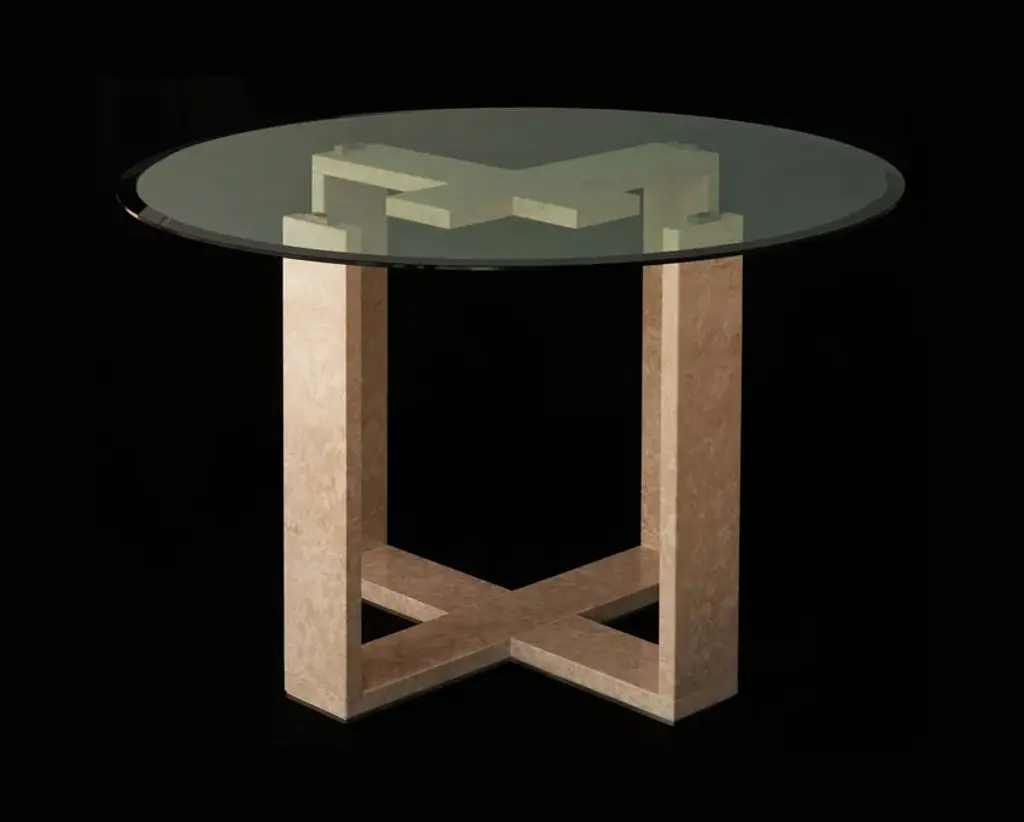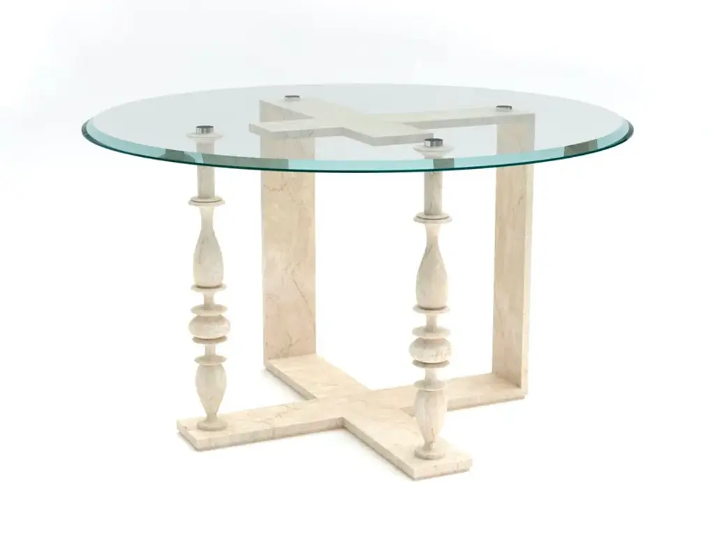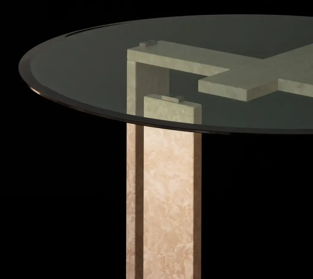 Simple Frame is a circular-shaped marble table characterized by the uniqueness of its legs. Made entirely of marble, Simple Frame's legs are simple, linear and give the table a modern style adaptable to all types of environments. The transparent glass top allows you to appreciate the unusual shape of the four legs joined together only in the base.Created in collaboration with architect and designer Luca Scacchetti, the Simple Frame dining table is part of a collection composed of three tables, different from each other by the shape of the legs. Variations in color or slight imperfections are the result of the craftsmanship of this article and are not to be considered defects.