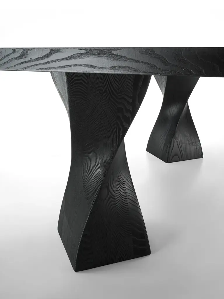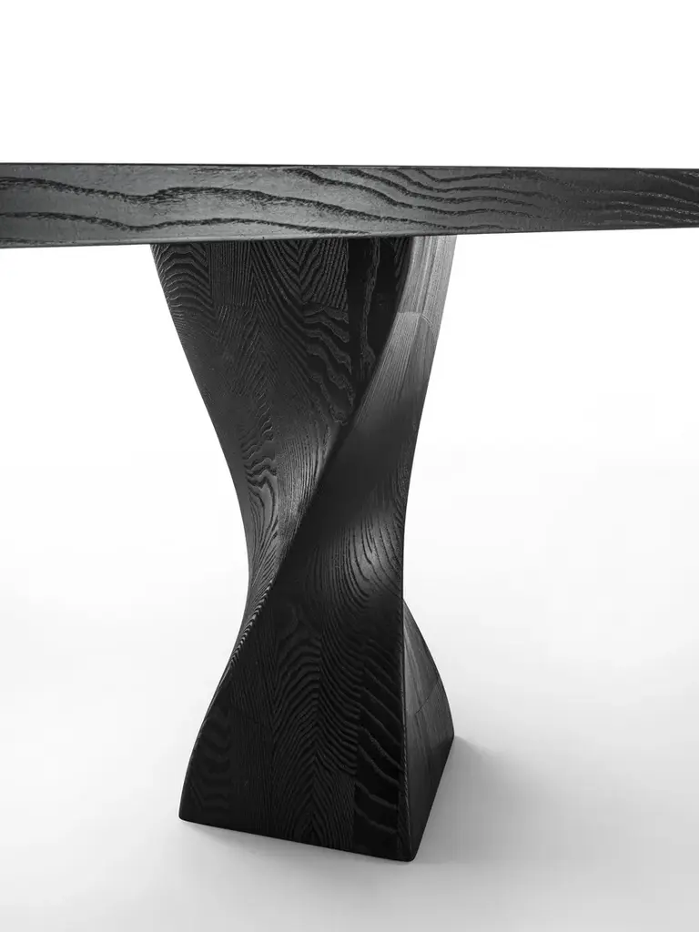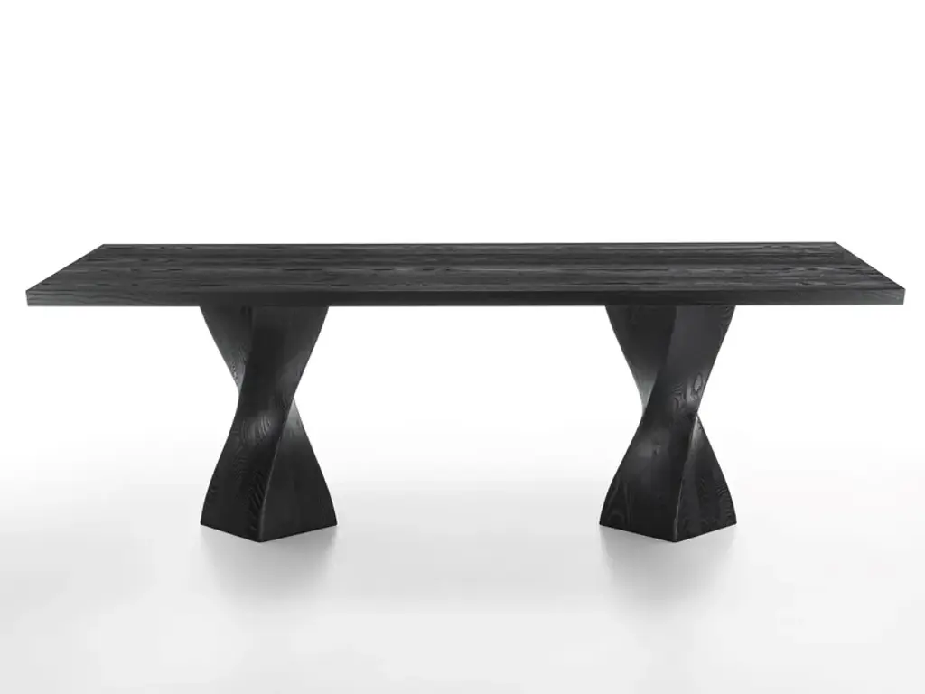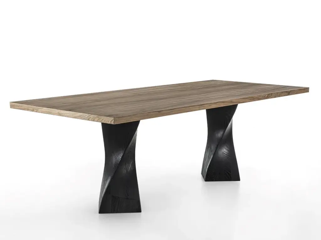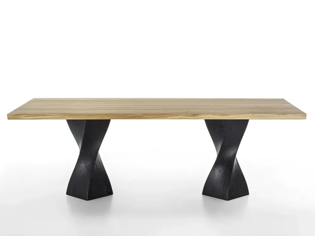 Simple Twist is a table with blockboard veneered top and bevelled edges. It is characterized by two solid wood legs in pigmented finish. The processing gives it movement and dynamism.AVAILABLE FINISHES:L1: blockboard veneered walnutL2: blockboard veneered oakL3: blockboard veneered ash, pigmented