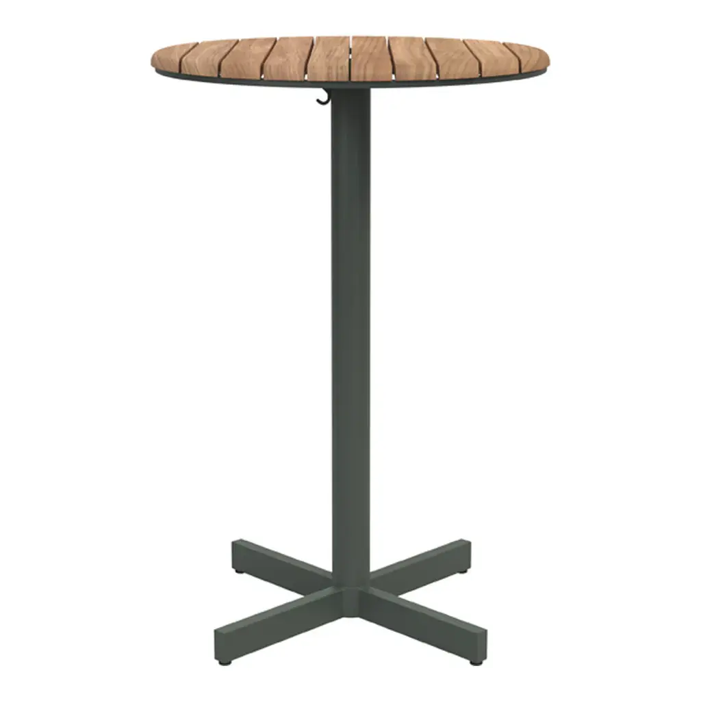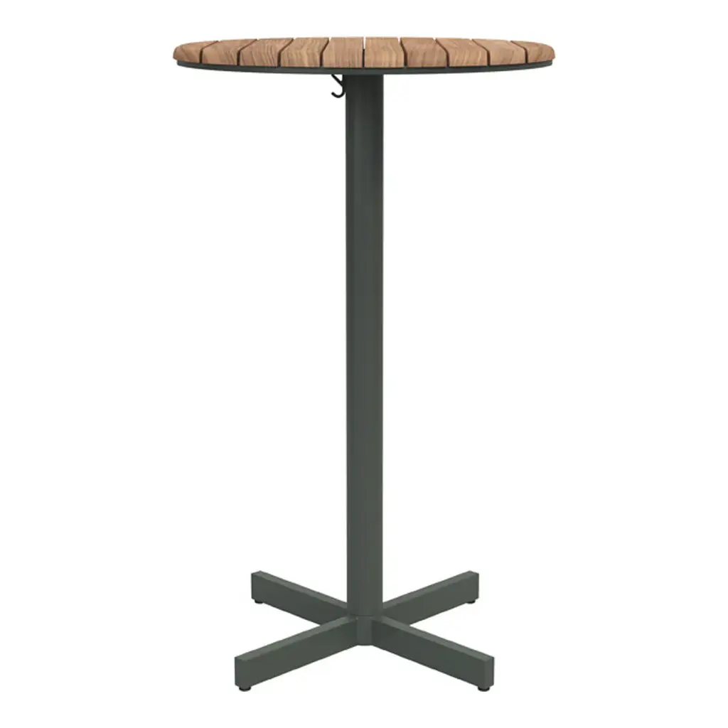 A round table with a centre-based frame and wooden tabletop. The design follows the simplicity in the Pelagus series with combination of teak and powder-coated metal. br> br>Pelagus is high on comfort and versatility. Dining and lounge furniture for a summer house in the Swedish archipelago, a villa beside a lake in Italy or grouped on the terrace of an urban hotel in California. br> br>NOTE Design Studio is a multi-disciplinary studio based in Stockholm with a holistic approach to product design, always imagining the furniture in its architectural and spatial context. Its team of architects, industrial and spatial designers love to collaborate with likeminded passionate people and companies worldwide, who dream as large as they do.