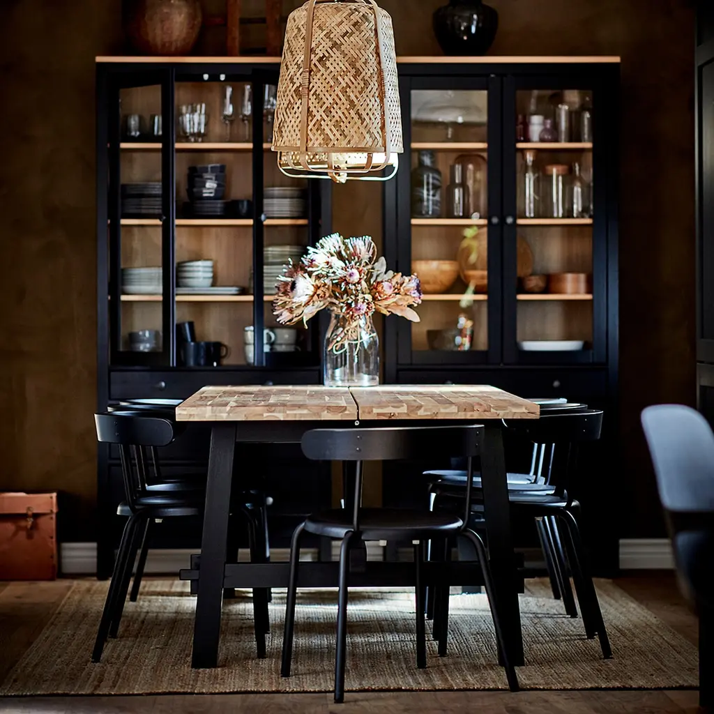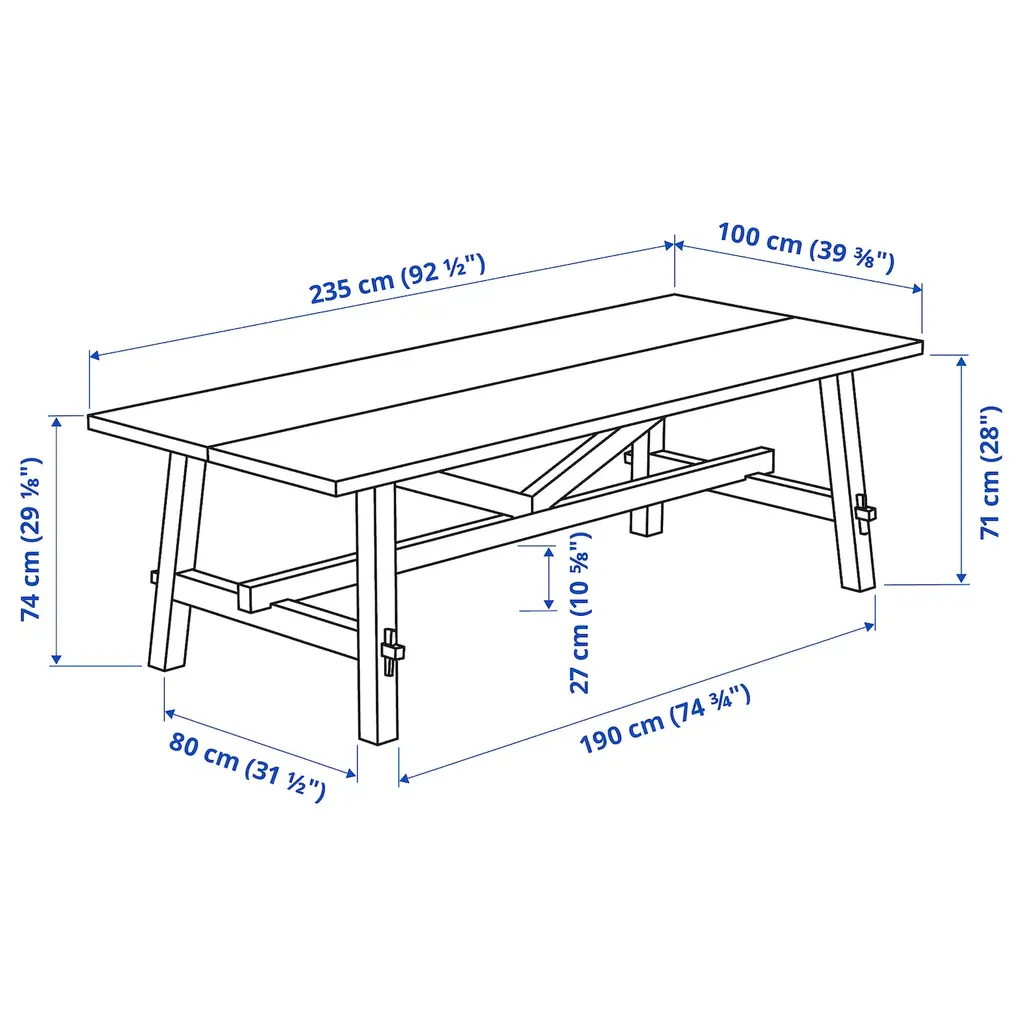SKOGSTA Dining table - acacia 92 1/2x39 3/8 ". Every table is unique, with varying grain pattern and natural color shifts that are part of the charm of wood. Recommended for indoor use only. Seats 6-8.
