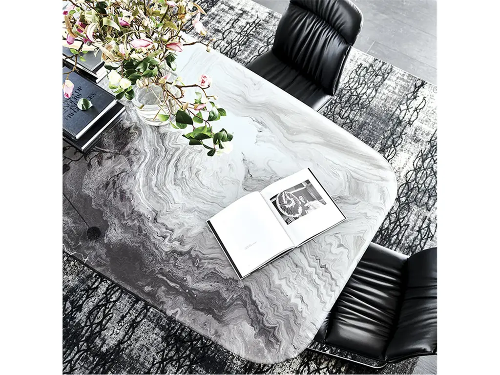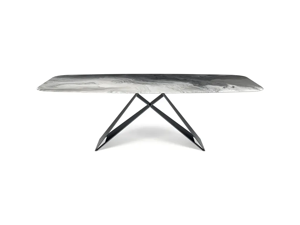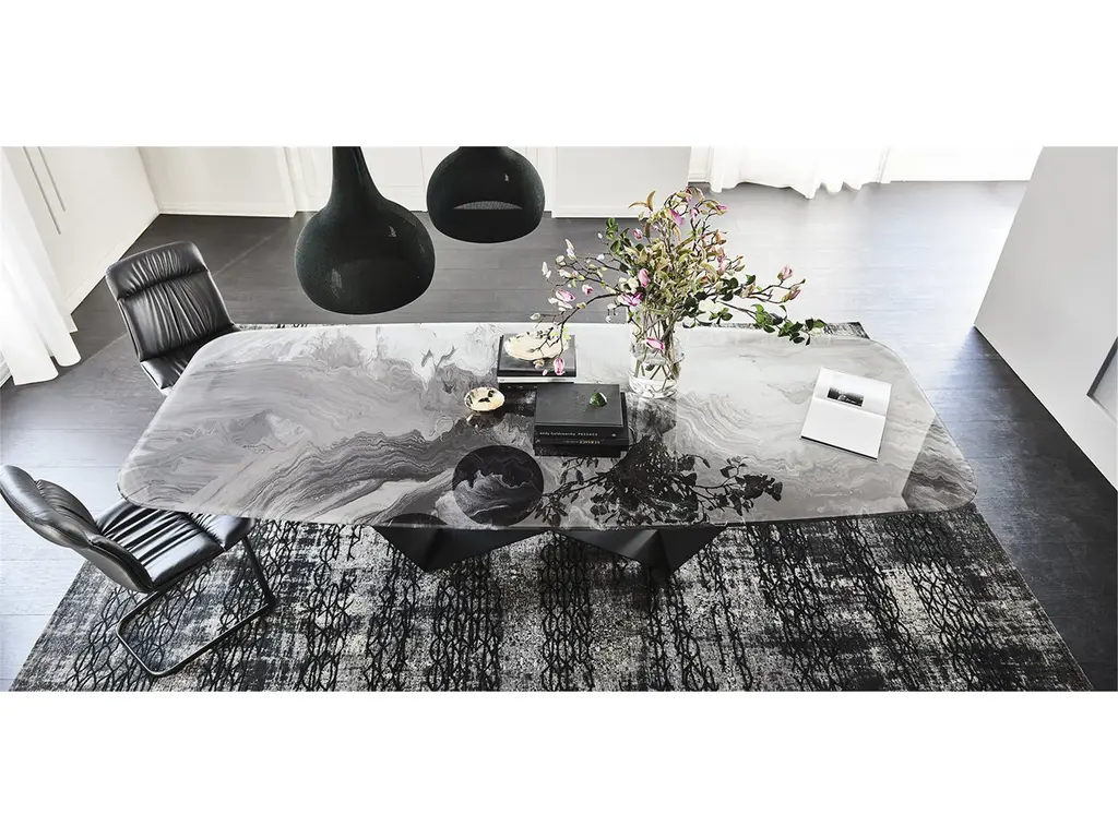 Designed by the talented Paolo Cattelan for Cattelan Italia, the Skorpio CrystalArt dining table makes a grand impression in a modern dining room. The geometrically inspired base is full of sculptural appeal and makes the table both beautiful and supportive. With ample space on the luxurious top, it provides plenty of room to eat and gather around for dinner parties and holidays. The Skorpio CrystalArt dining table is made in Italy and comes with a high degree of customization. It is available in rectangular and barrel shapes in three sizes, and the top is finished in CrystalArt beveled glass. Choose between an array of metal options for the base.