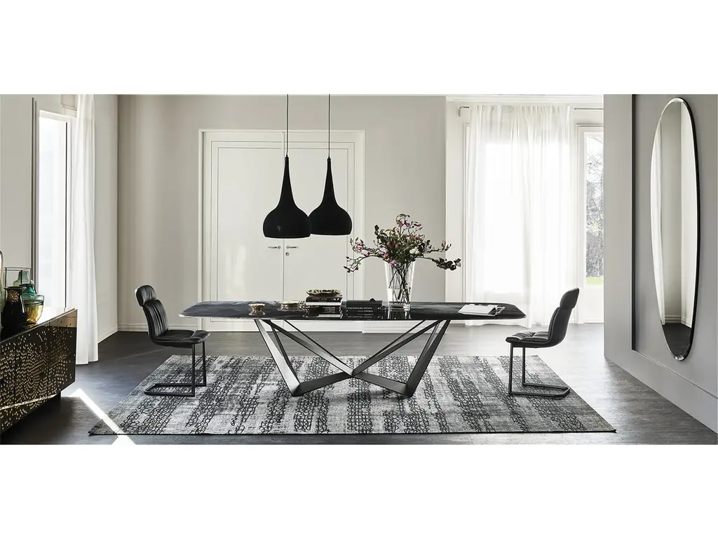 Designed by the talented Paolo Cattelan for Cattelan Italia, the Skorpio CrystalArt dining table makes a grand impression in a modern dining room. The geometrically inspired base is full of sculptural appeal and makes the table both beautiful and supportive. With ample space on the luxurious top, it provides plenty of room to eat and gather around for dinner parties and holidays. The Skorpio CrystalArt dining table is made in Italy and comes with a high degree of customization. It is available in rectangular and barrel shapes in three sizes, and the top is finished in CrystalArt beveled glass. Choose between an array of metal options for the base.