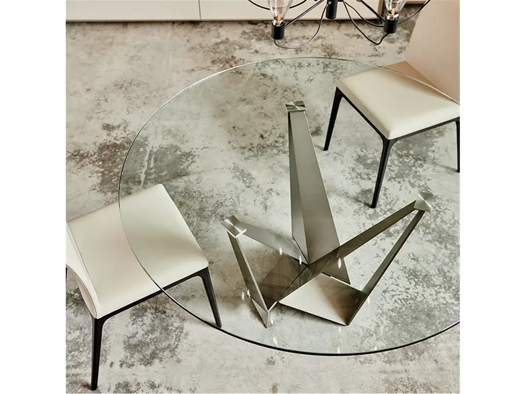 Skorpio Round dining table is full of unique identity that offers a great deal of functionality and innovative presence. Designed by Andrea Lucatello for Cattelan Italia and manufactured in Italy, the dining table is ideal for the kitchen as well as for a smaller dining room. It features a dramatic base that uses a playful amount of geometry to make it a gorgeous focal point. To optimize the round surface, an optional central swiveling tray in different glass finishes is available for a convenient feature. Skorpio Round dining comes with a high degree of customization. The top is available in various wood finishes as well as in 15mm clear or extra-clear glass with beveled edges, while the base comes in different metal options.