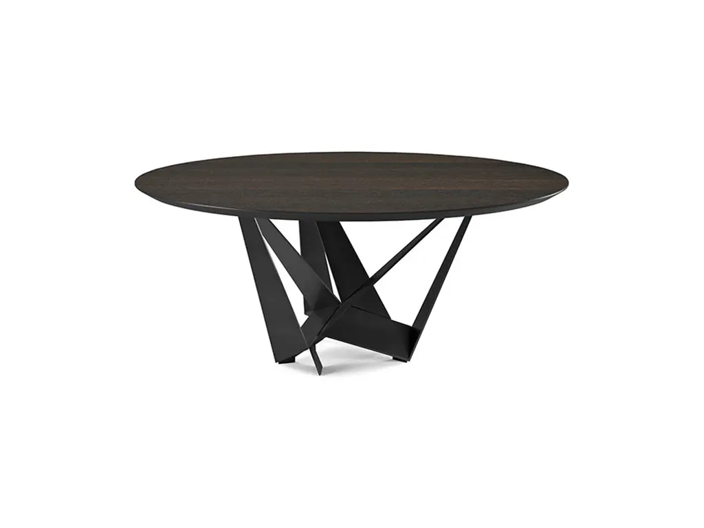 Skorpio Round dining table is full of unique identity that offers a great deal of functionality and innovative presence. Designed by Andrea Lucatello for Cattelan Italia and manufactured in Italy, the dining table is ideal for the kitchen as well as for a smaller dining room. It features a dramatic base that uses a playful amount of geometry to make it a gorgeous focal point. To optimize the round surface, an optional central swiveling tray in different glass finishes is available for a convenient feature. Skorpio Round dining comes with a high degree of customization. The top is available in various wood finishes as well as in 15mm clear or extra-clear glass with beveled edges, while the base comes in different metal options.