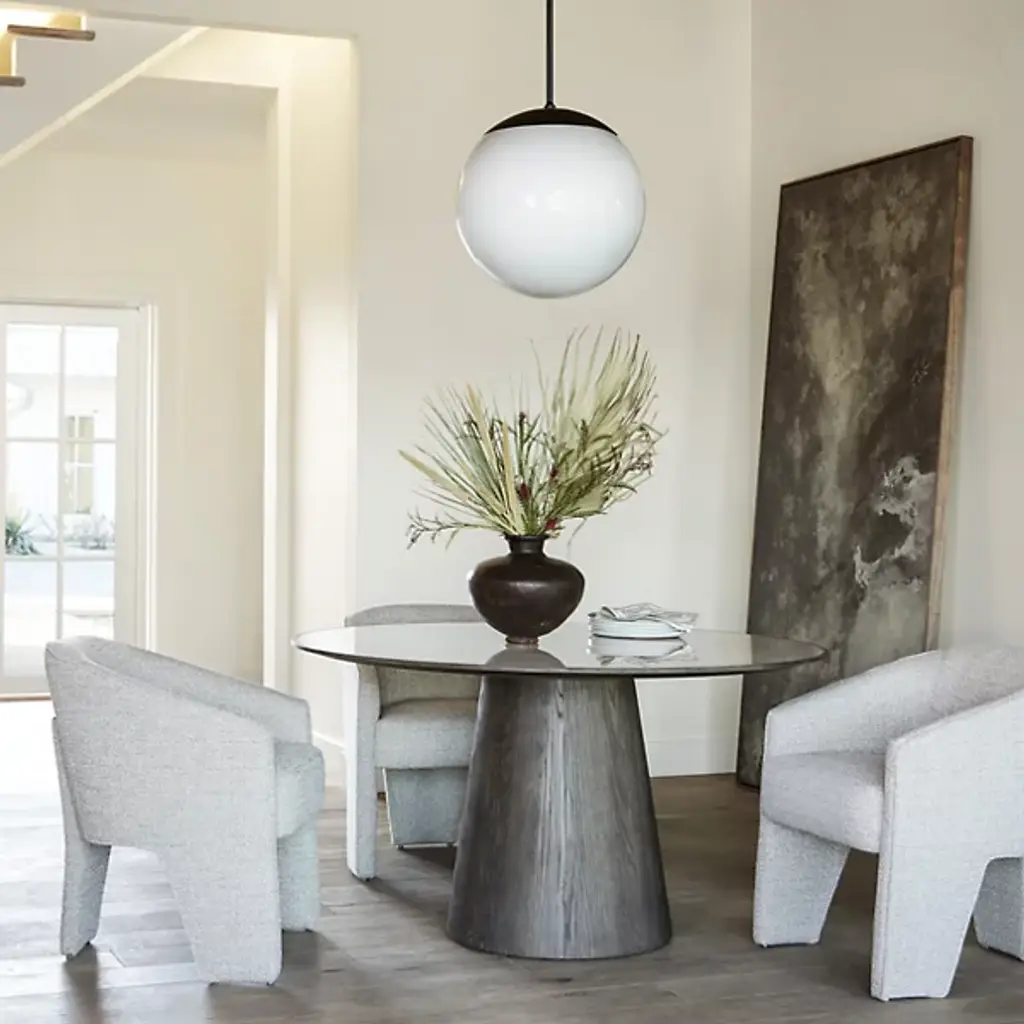 The Skye Dining Table from Four Hands is the seamless union of elegance and durability. The round tabletop invites engaging dining experiences, complemented by a subtle, tapered frame that brings a natural touch. Balancing refinement and ruggedness, the solid marble tabletop exudes luxury while the solid oak frame provides longevity, making this table a practical dining solution. Change up your dining area with Skye and discover that each meal is accompanied by sophisticated design and enduring craftsmanship.