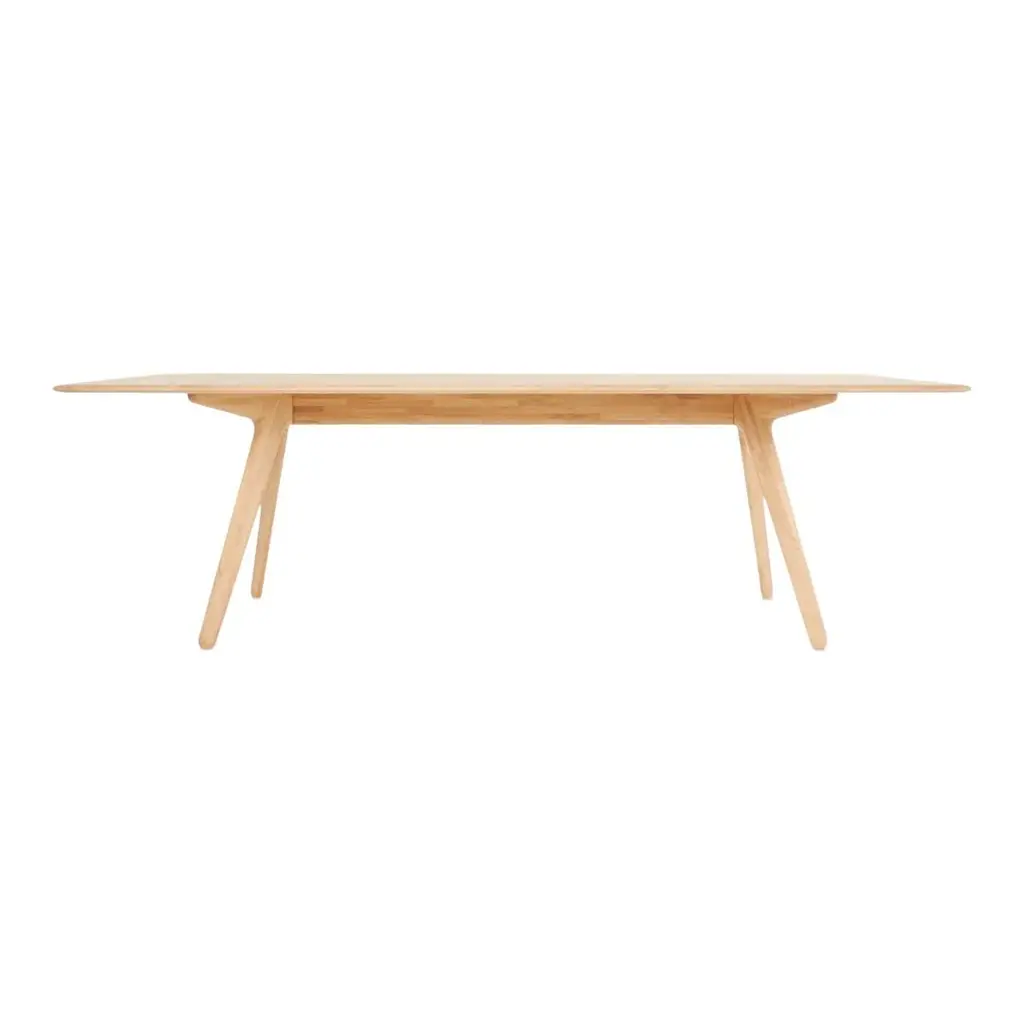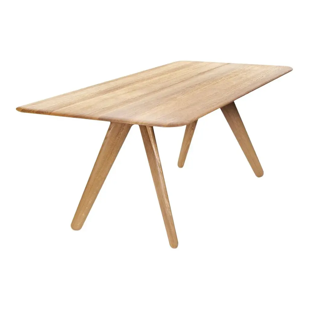 Celebrating the natural beauty of oak, Slab is constructed in angular forms of inviting simplicity. Each piece has generous proportions, solid materiality, and is softened with a gentle radius edge. Slab is made from solid oak, sourced from sustainably-managed forests. The surface of the wood is deeply brushed to expose its natural grain. Slab tables come in different shapes and sizes.