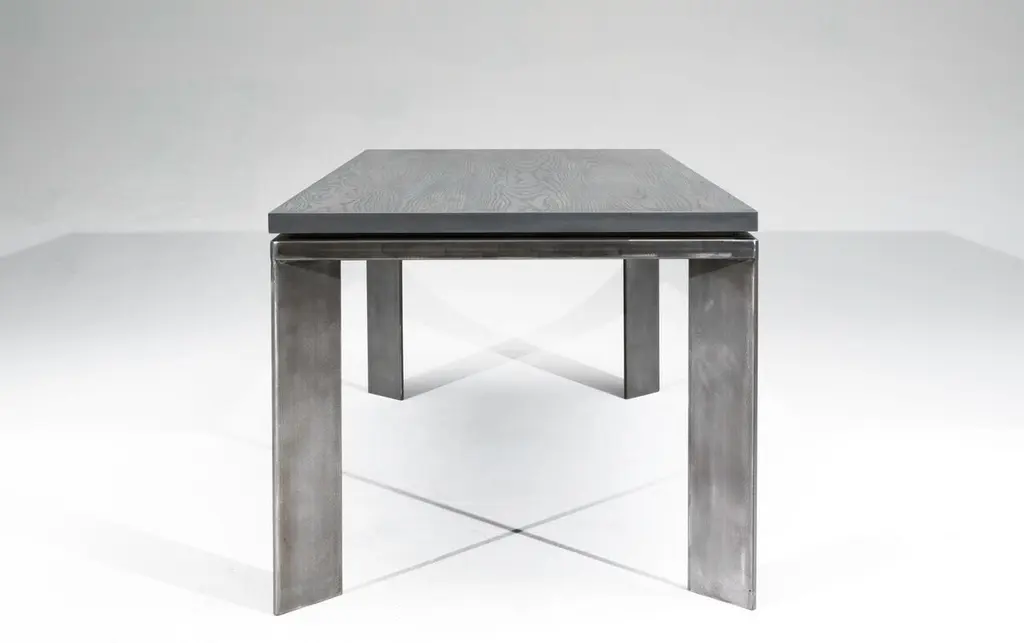 Slate Gray Ashwood Dining Table On Brushed Steel Base "Charlevoix Dining Table"
