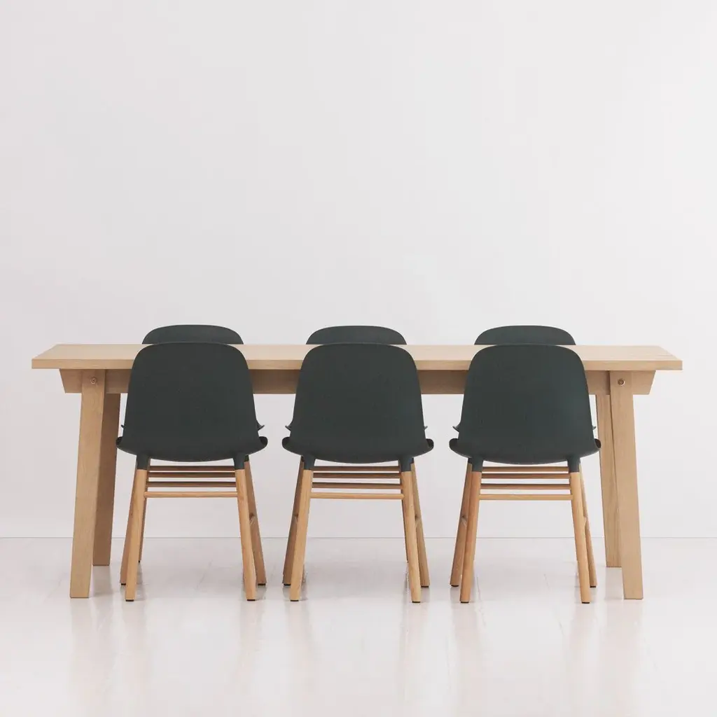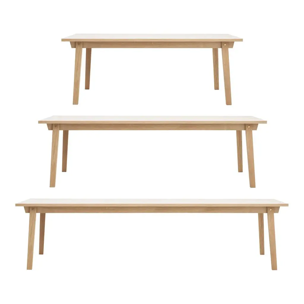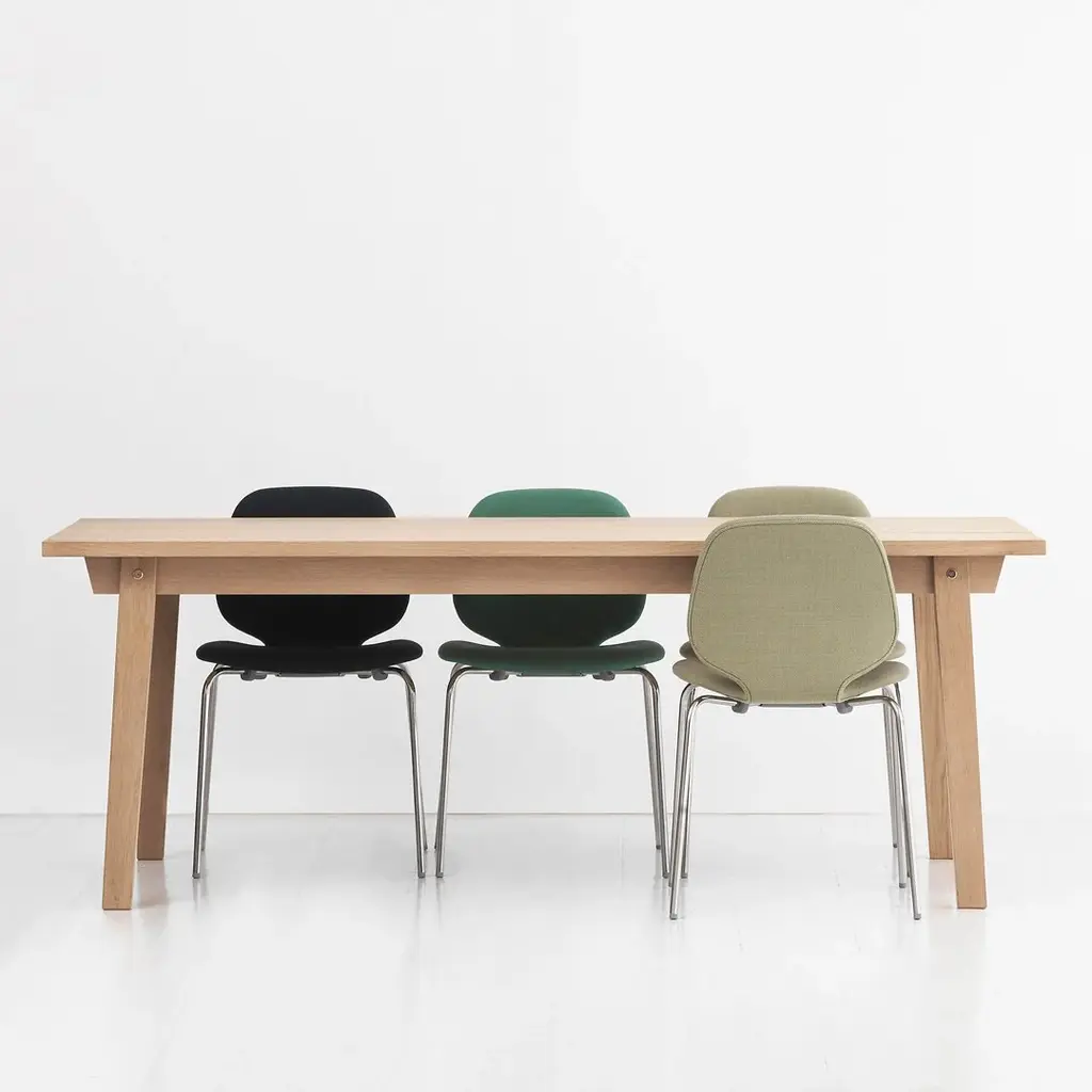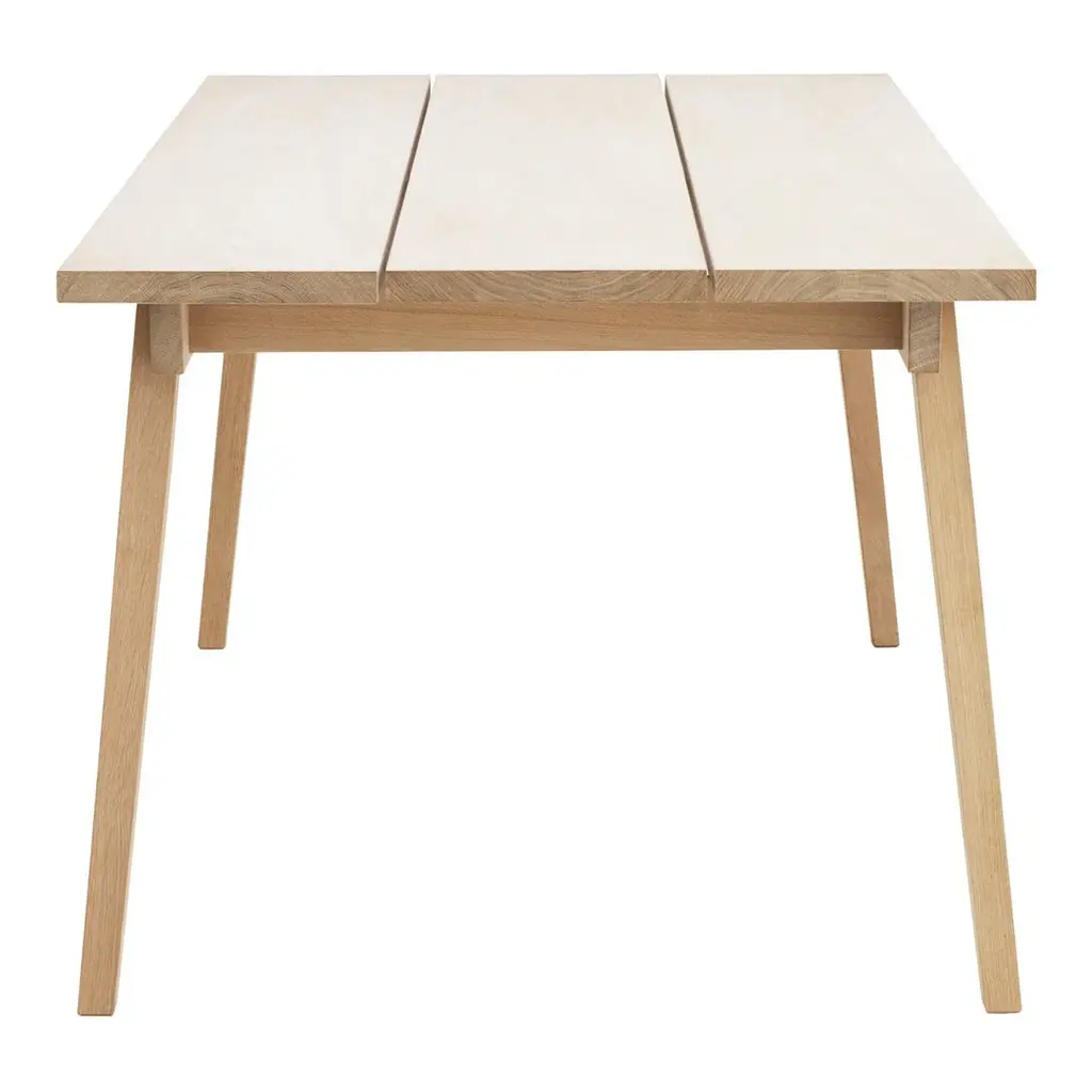 The Slice Table is a classic, attractive design where the Table Top quite simply consists of three long, wide planks. The table comes in three different lengths perfect for residences where space is not an issue. The gaps between the planks create air and add character to this Scandinavian design. A simultaneously solid and contemporary expression. Slice is great for the design lover who wants the natural, untreated look of raw wood. The hardness and durability of the oak make the material very suitable for use as a table. Slice is ideal as a dining table in the kitchen or living room, as a spacious alternative to a writing desk in the office or even for use in restaurants.