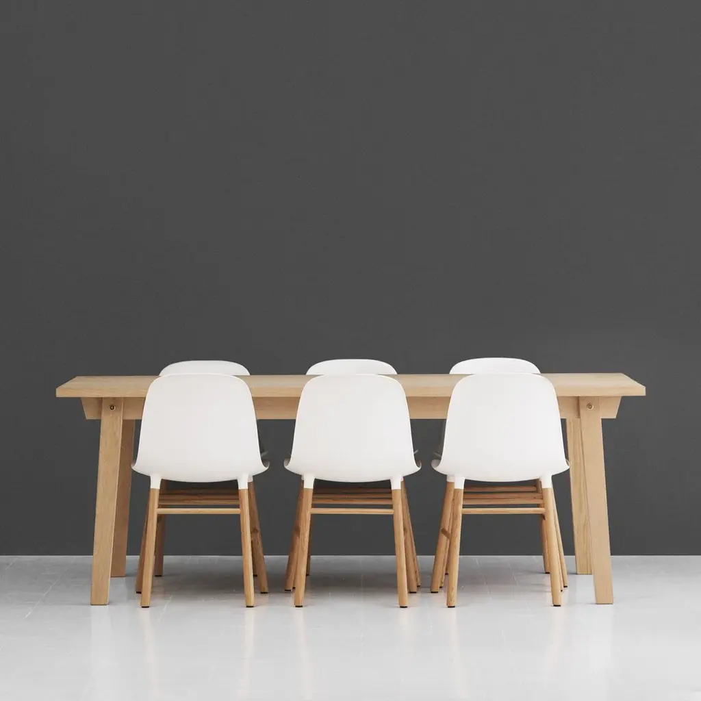 The Slice Table is a classic, attractive design where the Table Top quite simply consists of three long, wide planks. The table comes in three different lengths perfect for residences where space is not an issue. The gaps between the planks create air and add character to this Scandinavian design. A simultaneously solid and contemporary expression. Slice is great for the design lover who wants the natural, untreated look of raw wood. The hardness and durability of the oak make the material very suitable for use as a table. Slice is ideal as a dining table in the kitchen or living room, as a spacious alternative to a writing desk in the office or even for use in restaurants.
