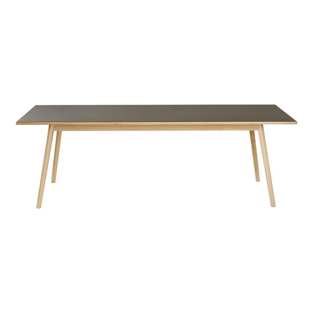 Normann Copenhagen extends its Slice series in this table with a solid linoleum surface instead of the original plank-top version. Linoleum is a natural product known for its anti-bacterial and self-healing properties, and the velvety surface is soft and pleasing to the touch. Designer Hans Hornemann underscores the sturdy nature of the natural oak frame with slightly angled and tapered legs that are attached with workmanlike exposed bolts. Attractive and hardwearing, Slice makes not only an ideal dining table in both residential and hospitality settings but also functions as alternative to a writing desk at home or in the office.