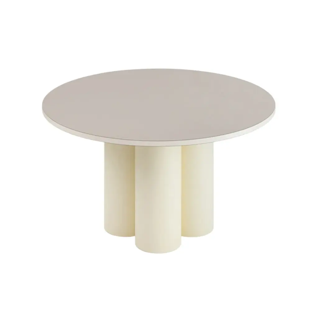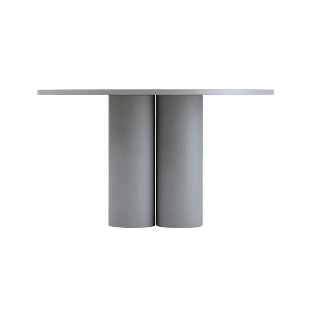 The Slon Round Dining Table from Matter Made features a minimalist design with two simple forms—a tube and a slab—combined with a soothing pastel and earthy color palette. Offering a variety of standard options and limitless custom variations, this table brings both elegance and versatility to your dining space, making every meal a stylish experience. Highlights