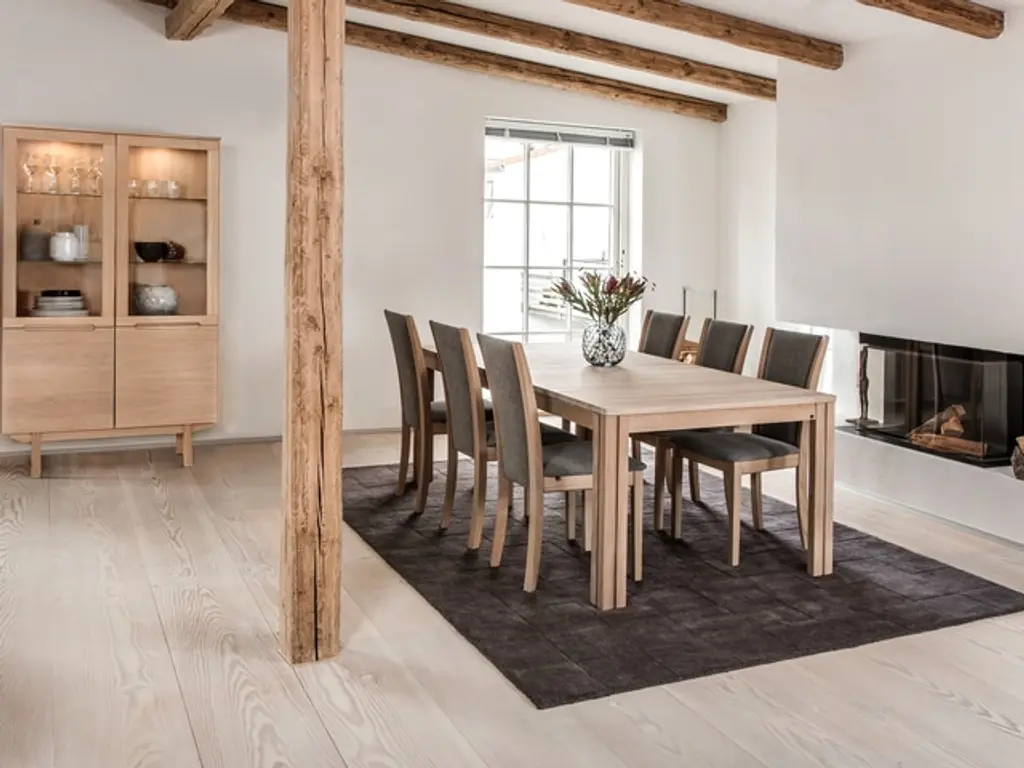 Underneath the dining tabletop three extension leaves are stored – and the dining table can be extended to 14 seatings. Furthermore, three additional leaves can be purchased in order to fully exploit the potentials of this dining table, i.e. seat up to 20 persons. The extension system is simple and very easy to use, even for one person alone. The design is simple without being minimalistic. All edges are rounded and the furniture therefore more pleasant to touch. The #24 dining table is also available with a dining tabletop in laminate – the Skovby High Pressure Silk Laminate. The silk laminate dining tabletop is white and can be combined with a base of oak white oil, oak soap finish or black wengé
