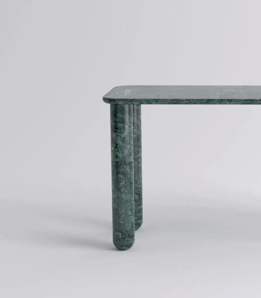 Small green marble "Sunday" dining table - Jean-Baptiste Souletie Dimensions: 150 W x 50 D x 74.5 H cm Materials: Indian Green marble. Different finishes and sizes are available.