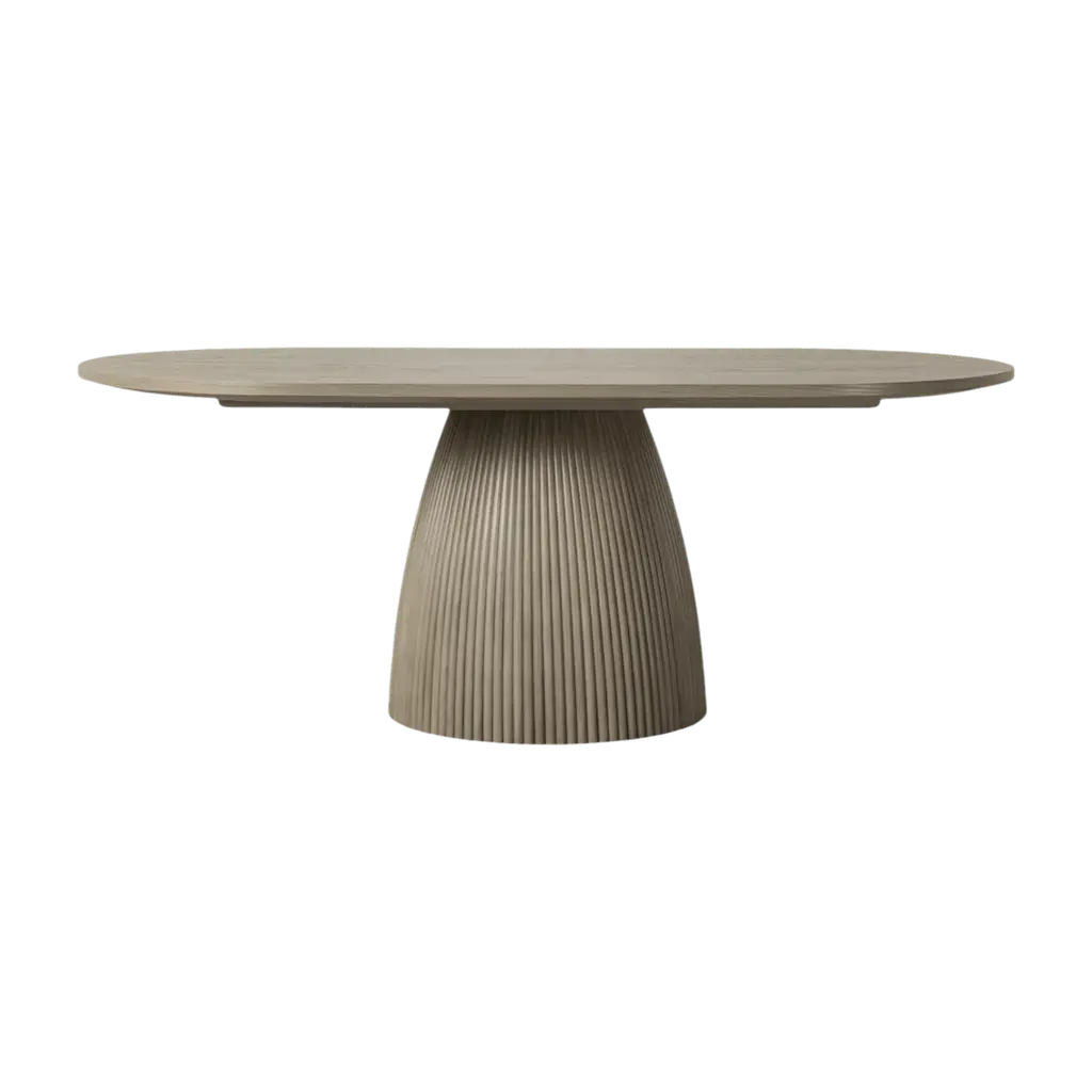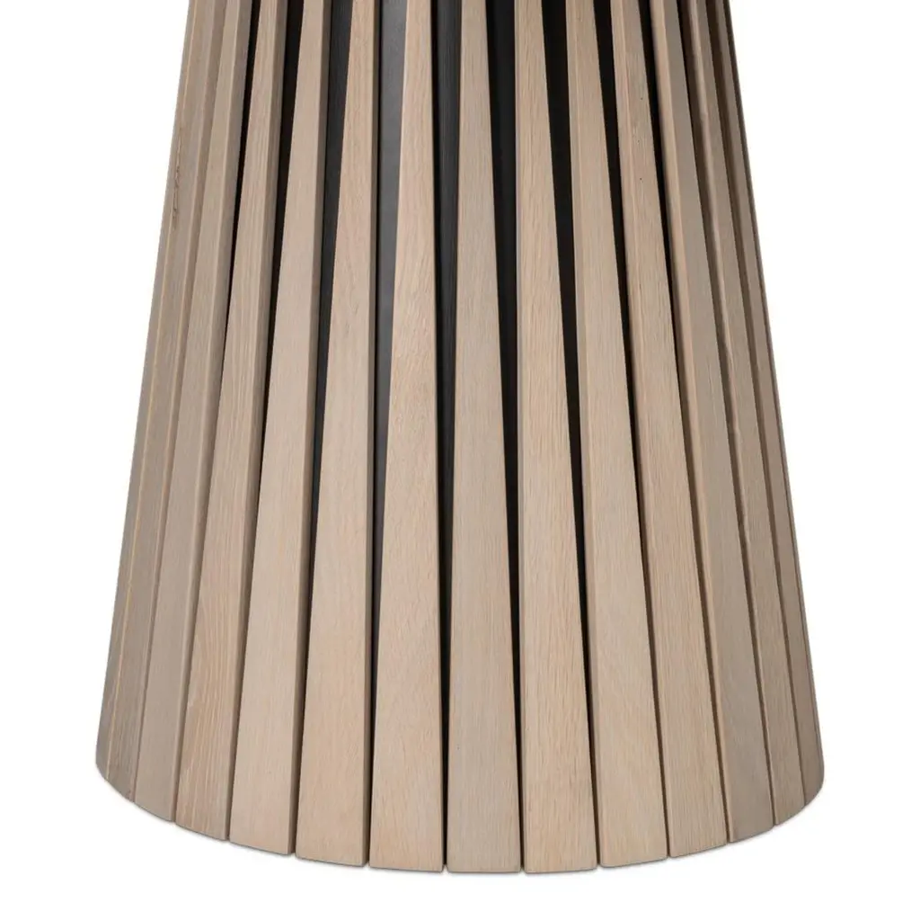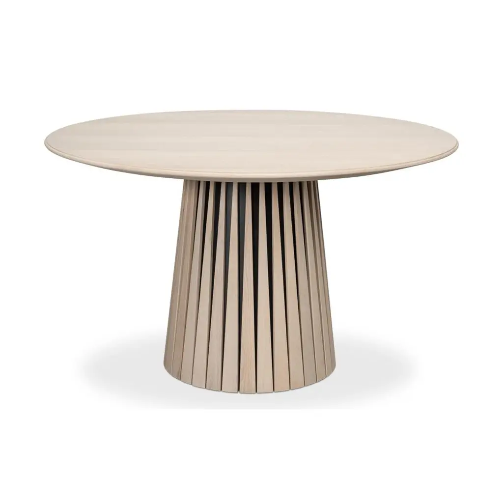 The brushed light grey finish on oak offers a rustic elegance that seamlessly blends contemporary design with timeless charm. Perfect for intimate gatherings, this table's unique base design adds a touch of sophistication to any room. Whether you're enjoying a casual breakfast or a formal dinner, this table provides a stylish and inviting setting.Dimensions: 51" W x 51" D x 30" H