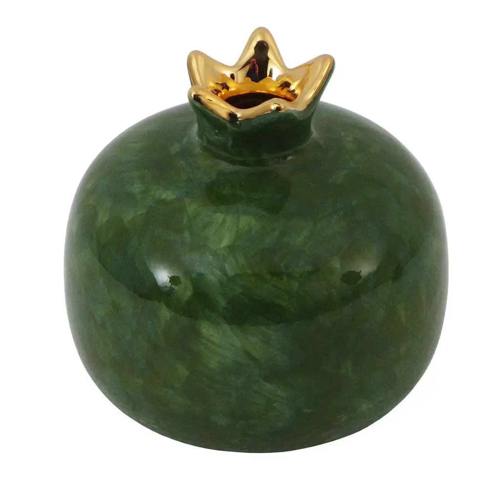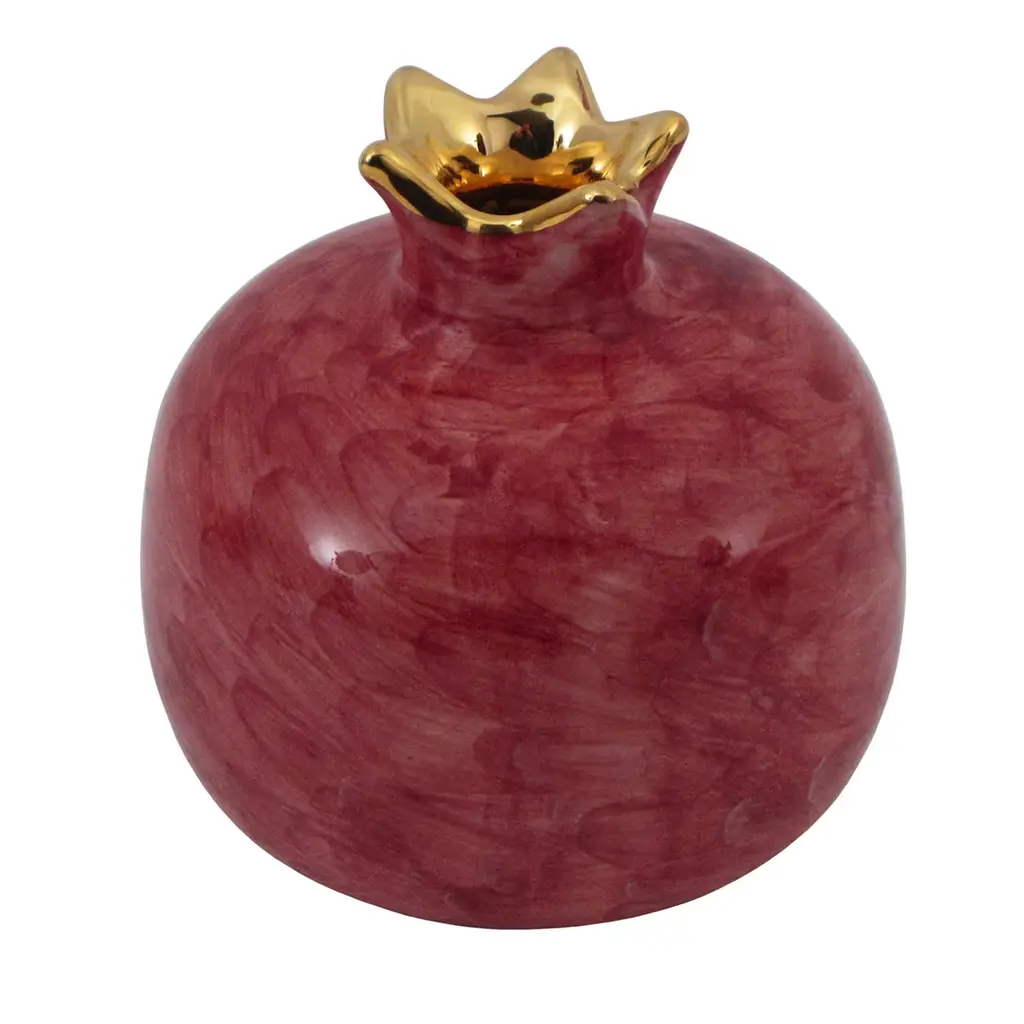 Offered in several colors and two sizes, this ceramic pomegranate replica will add charm and refinement elegance to any home. A well-known symbol of positive energy, prosperity, and abundance, the glossy red glaze enhances its exquisite craftsmanship making it a bright decorative piece that can be displayed in multiples as a centerpiece, with dried flowers, or to hold small candles on a dining table.