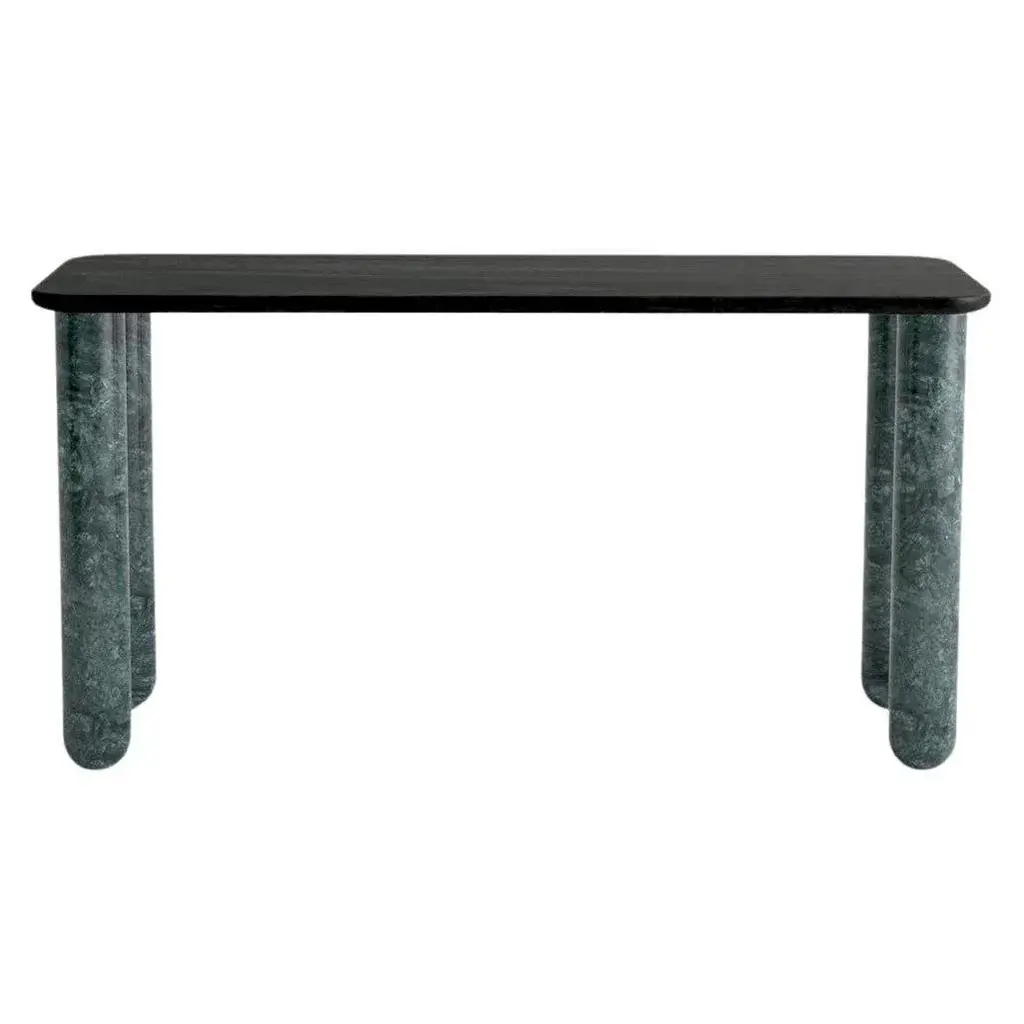 Small black wood and green marble "Sunday" dining table - Jean-Baptiste Souletie Dimensions: 150 W x 50 D x 74.5 H cm Materials: Indian Green marble legs, black stained wood top. Different finishes and sizes are available. Sunday is a family of dinner tables, coffee tables and consoles with a simple and sculptural design. The mix of heavy marble legs and a thin solid wood top creates an interesting contrast while the rounded edges and generous proportions provide a comforting feeling. Sunday is all about the materials: 3 marbles and 2 woods are available in the collection. Sunday comes in a wide variety of dimensions and 2 different marble legs heights to perfectly fit your interior whether you need a small coffee table, a large one, a console, or even a dinner table that will seat 10 guests on a friendly Sunday lunch. Jean-Baptiste Souletie is the Co-founder of the furniture editor La Chance with Louise Breguet. He studied in India, worked for a merchant bank in London (where he designed their new offices), before working for an investment fund (where he redevised the graphic chart), and in the strategic department of a luxury goods company in Paris. He returned to his first loves, architecture and furniture, when he founded La Chance in 2012.
