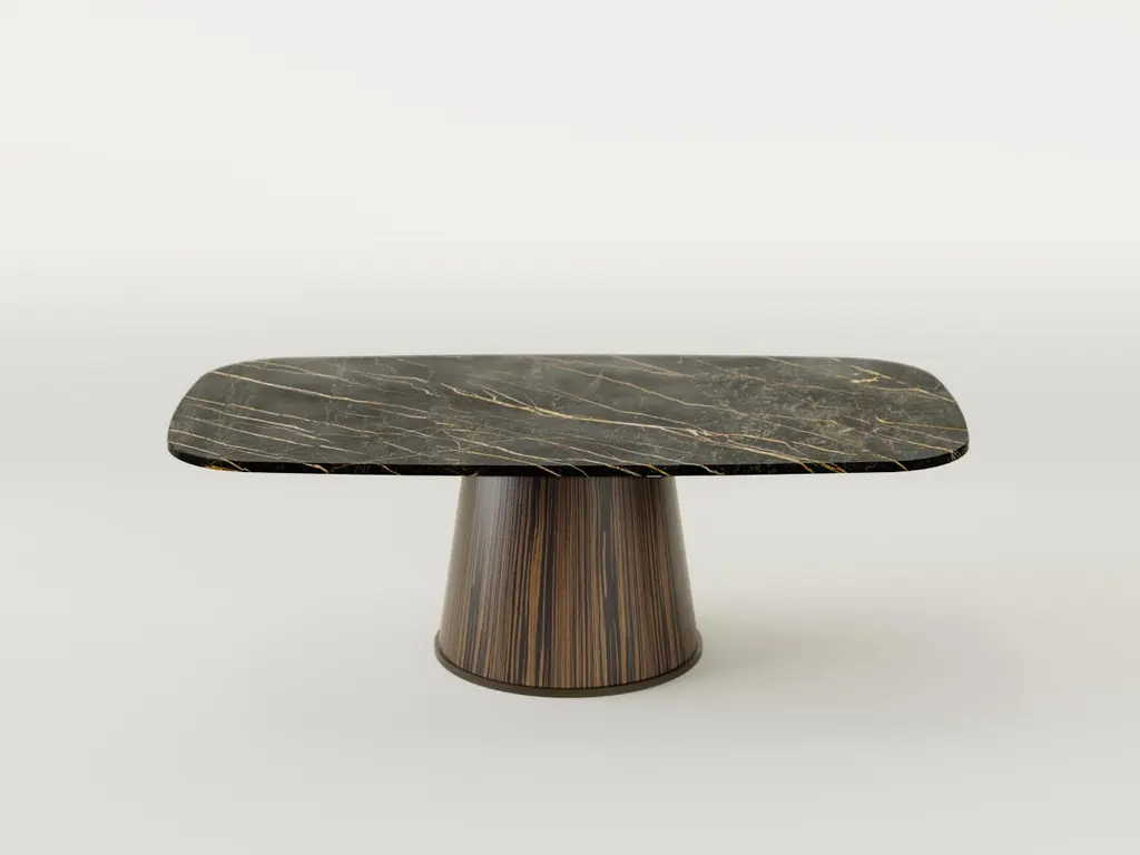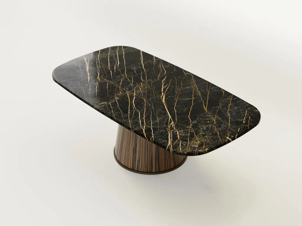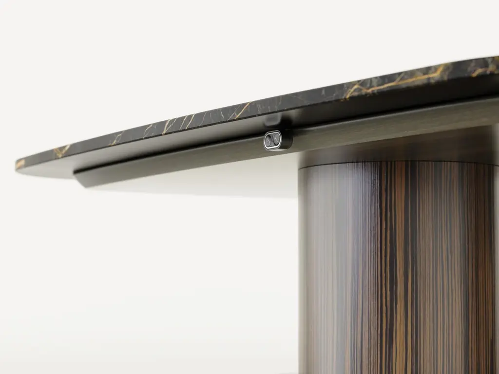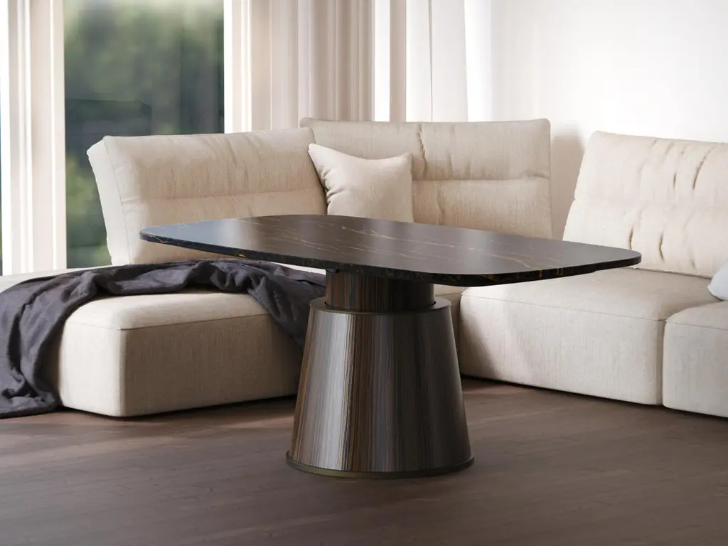 The Smart Table is an up-and-down adjustable table with Port Laurent black marble top and Macassar Ebony wood base that combines two key features: dual use and technology.In fact, it is a unique height-adjustable table that, thanks to the inclusion of an electronic lifting mechanism, transforms at will from “dining” to “coffee” table. Transforming Smart Table from a coffee table to a dining table is very simple: just use the height adjustment buttons installed under the top of the table or remotely via the special remote control. This electronic height adjustment of the table allows for easy adaptation to the environment and different needs.Smart Table is an electronically transformable table that is extremely versatile but also a true design element. The top made entirely of Port Laurent black marble guarantees elegance and durability while giving the room a decorative element.The Smart table can be customized in materials and shape according to the customer’s wishes to make it more akin to the type of use and the environment in which it will be placed.Contact us for customize your Smart Table with the marble and wood you are looking for.(Variations in color or slight imperfections are the result of the craftsmanship of this item and are not to be considered defects).