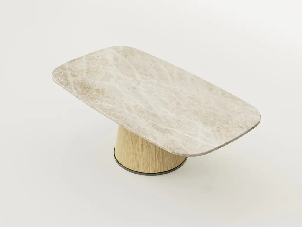 The Smart Table is an up-and-down adjustable table with Taj Mahal quartzite top and White Oak wood base that combines two key features: dual use and technology.In fact, it is a unique height-adjustable table that, thanks to the inclusion of an electronic lifting mechanism, transforms at will from “dining” to “coffee” table. Transforming Smart Table from a coffee table to a dining table is very simple: just use the height adjustment buttons installed under the top of the table or remotely via the special remote control. This electronic height adjustment of the table allows for easy adaptation to the environment and different needs.Smart Table is an electronically transformable table that is extremely versatile but also a true design element. The top made entirely of Taj Mahal quartzite guarantees elegance and durability while giving the room a decorative element.The Smart table can be customized in materials and shape according to the customer’s wishes to make it more akin to the type of use and the environment in which it will be placed.Contact us for customize your Smart Table with the marble and wood you are looking for.(Variations in color or slight imperfections are the result of the craftsmanship of this item and are not to be considered defects).