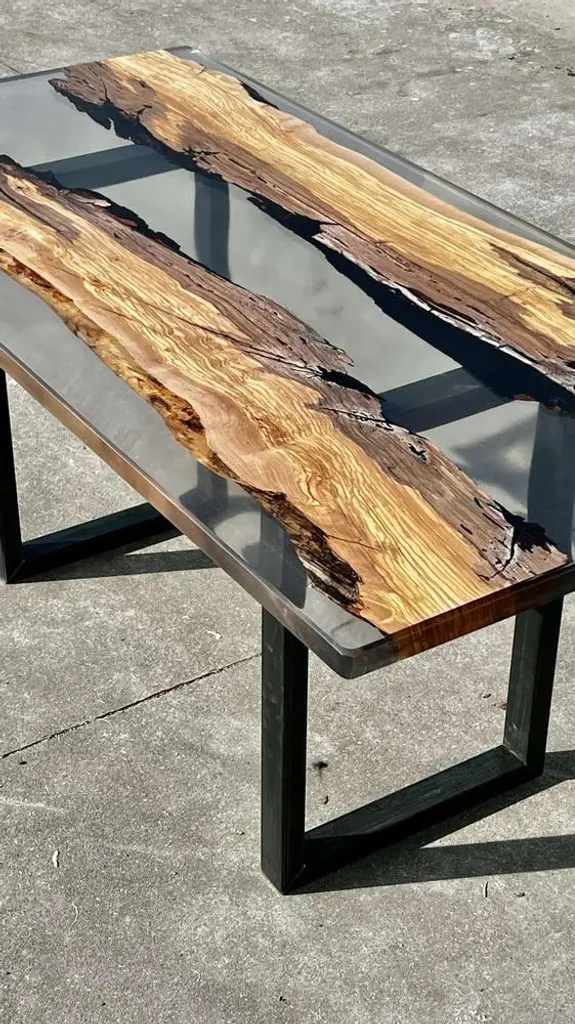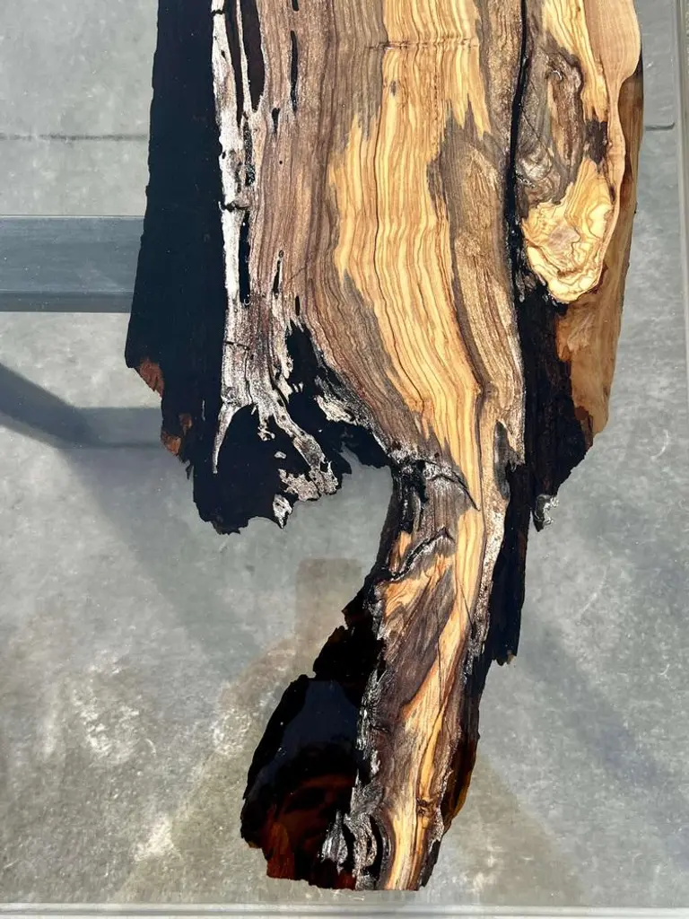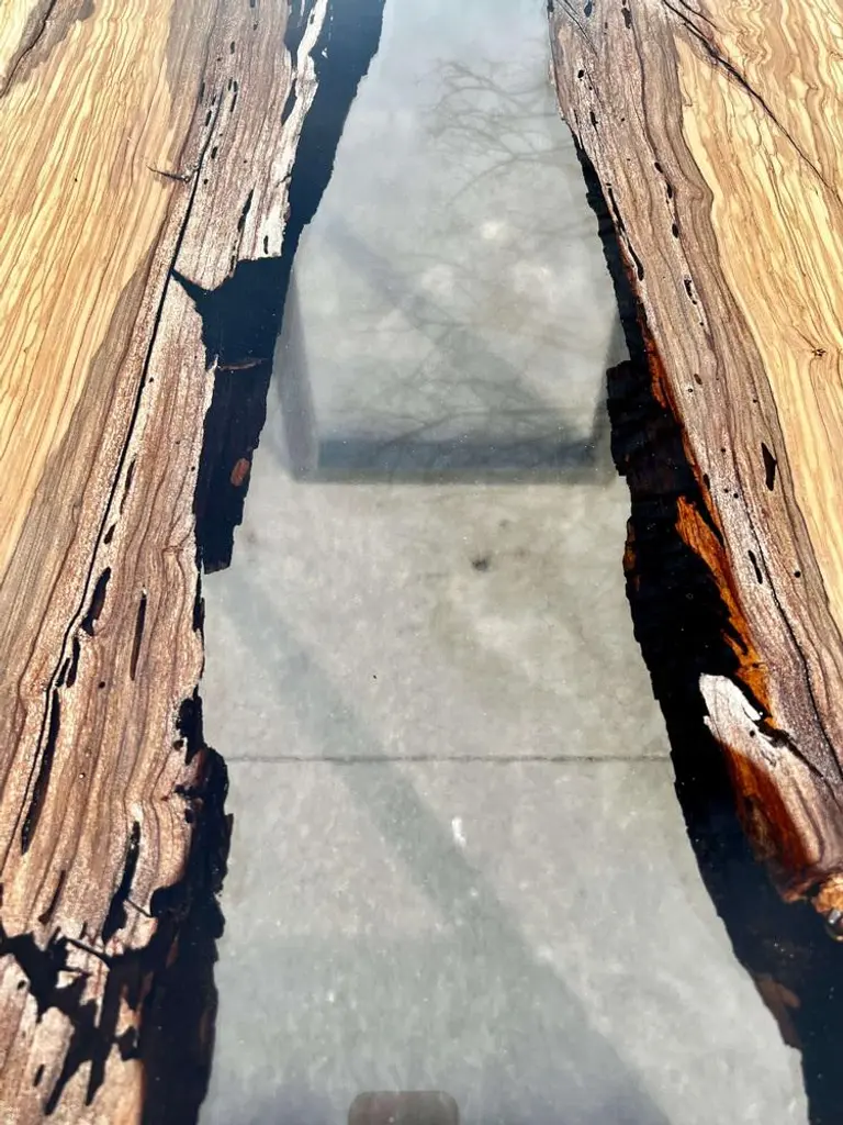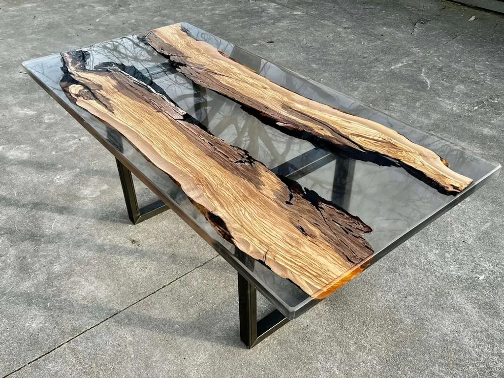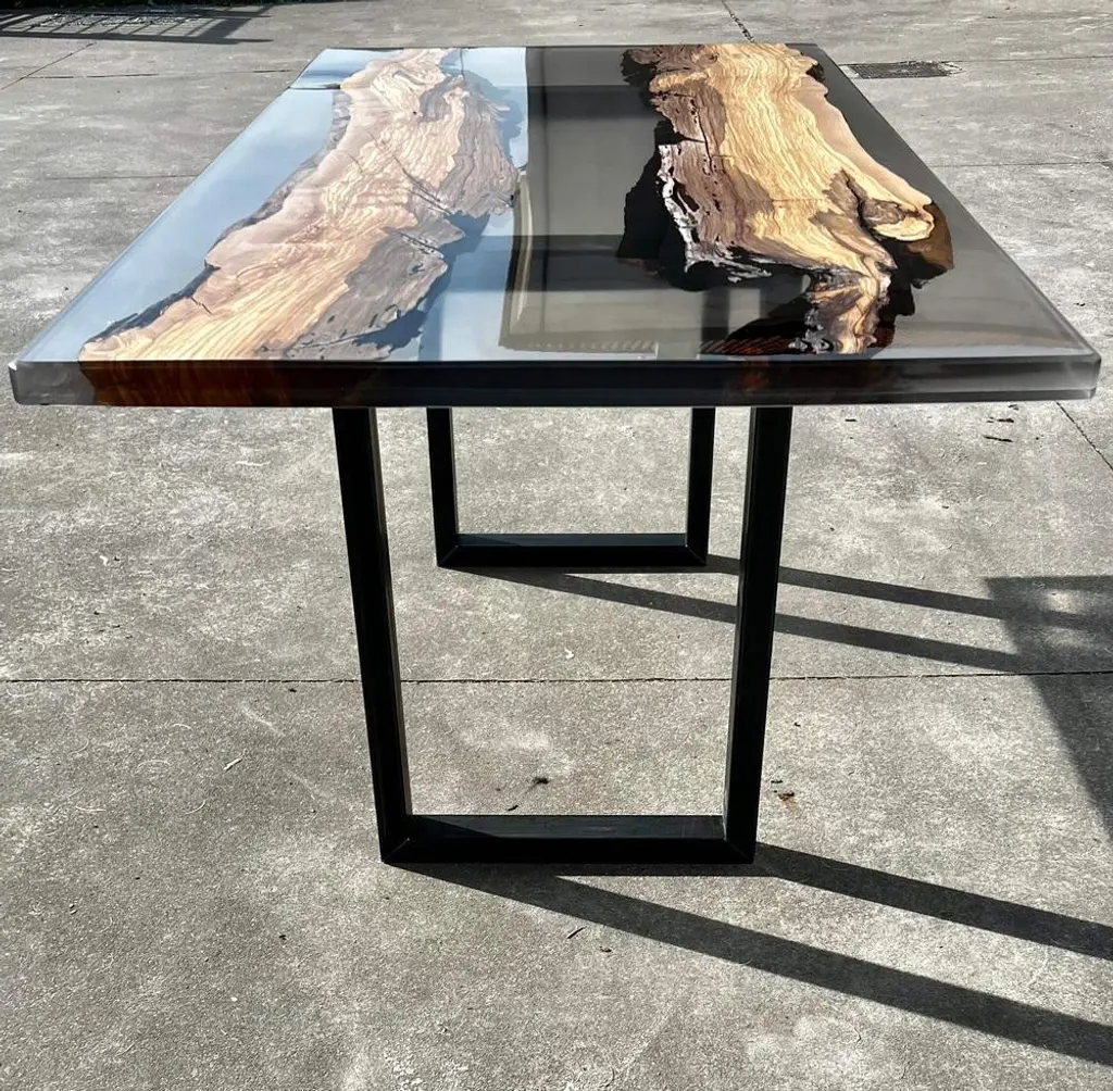 Smoke is a dining table made of wood and epoxy resin. In this River Table two steps of Lecce olive and epoxy resin are used. The top table is treated with cooked linseed oil that preserves the naturalness of the wood part, the resin is polished by hand. The welded iron legs are opaque black lacquered. Each table of mine is made exclusively by hand, in Italy, on commission and tailored to the customer. The proposed images concern a table already made. In case of order, a news table will be created on the basis of the smoke model Signed by Maker