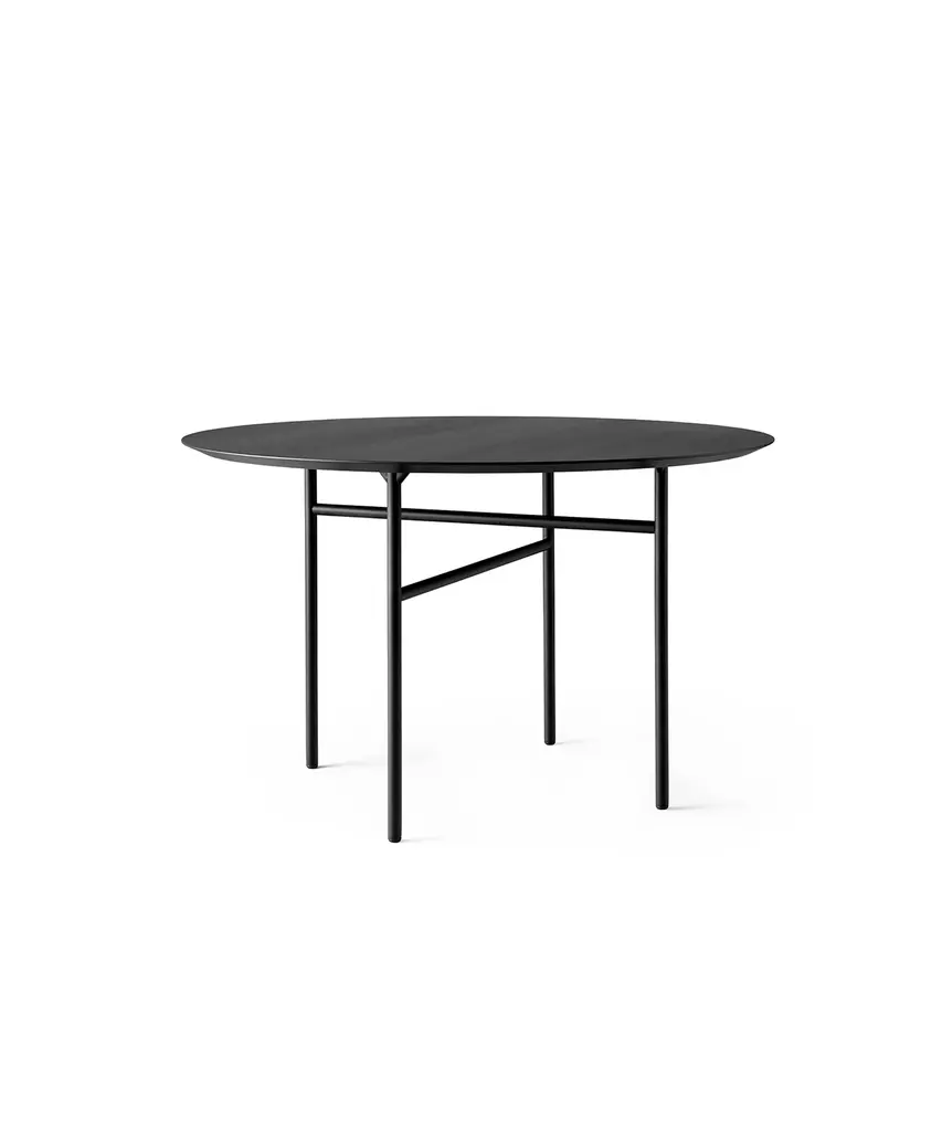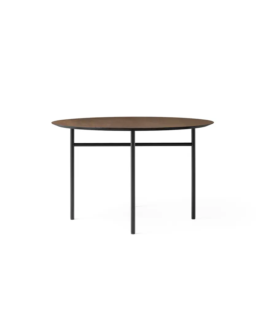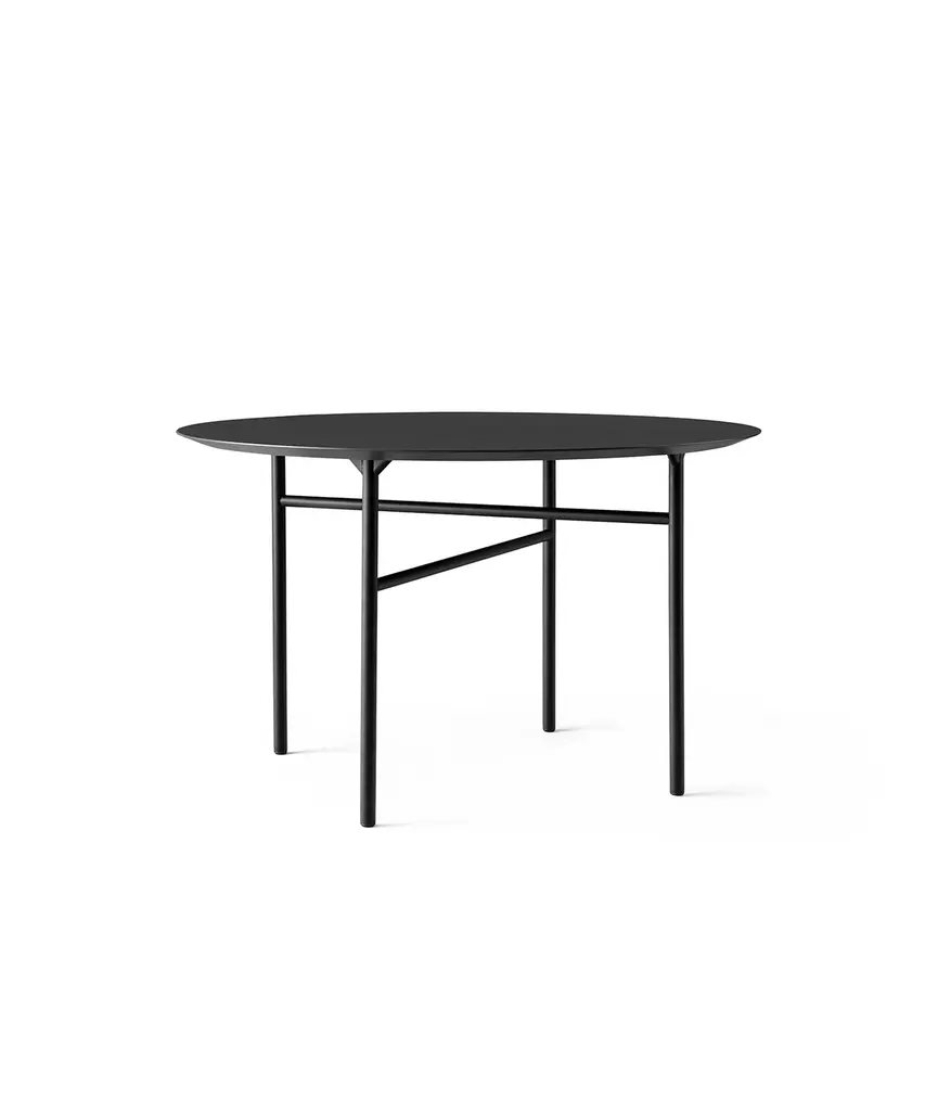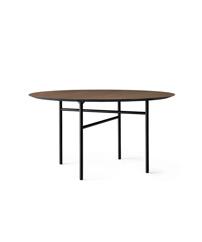Based on a design originally created for the studio's conference room, this modern rectangular table is rooted in Scandinavian design tradition. Named after the street that houses the studio used by Norm Architects in Copenhagen, the Snaregade Round Table is a tried and tested table that is strikingly practical. Available in a painted oak veneer with powder-coated steel legs. Designed by Norm Architects for the Danish design company, Audo Copenhagen.
