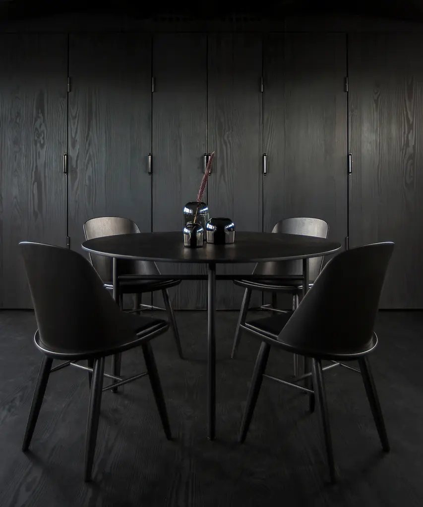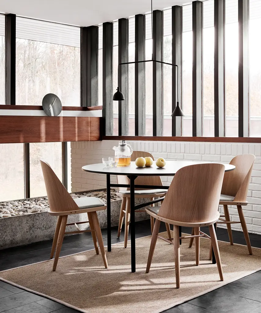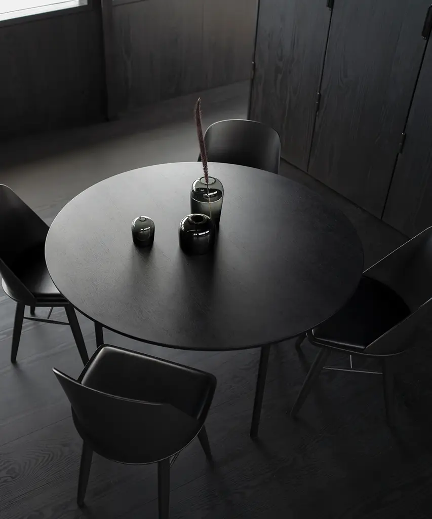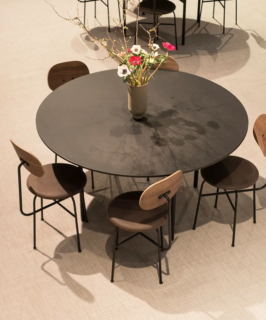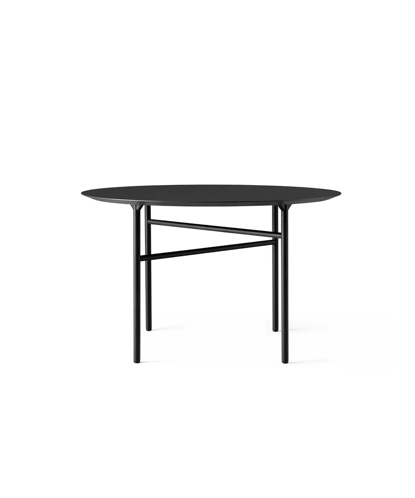 Based on a design originally created for the studio's conference room, this modern rectangular table is rooted in Scandinavian design tradition. Named after the street that houses the studio used by Norm Architects in Copenhagen, the Snaregade Round Table is a tried and tested table that is strikingly practical. Available in a painted oak veneer with powder-coated steel legs. Designed by Norm Architects for the Danish design company, Audo Copenhagen.