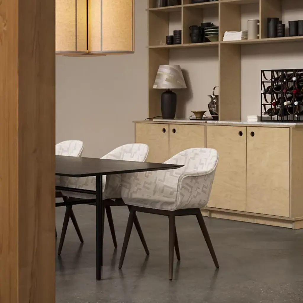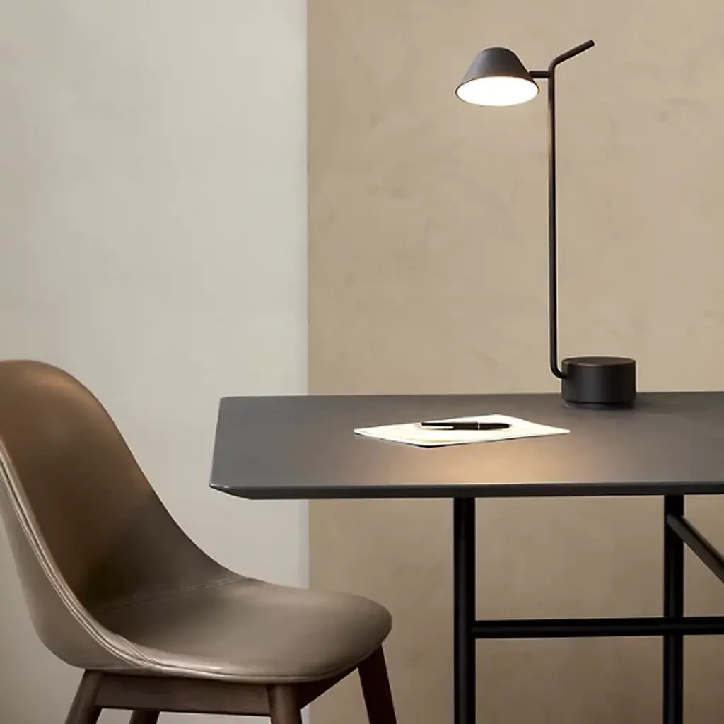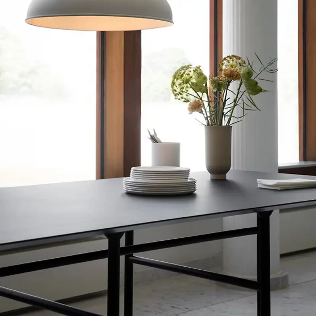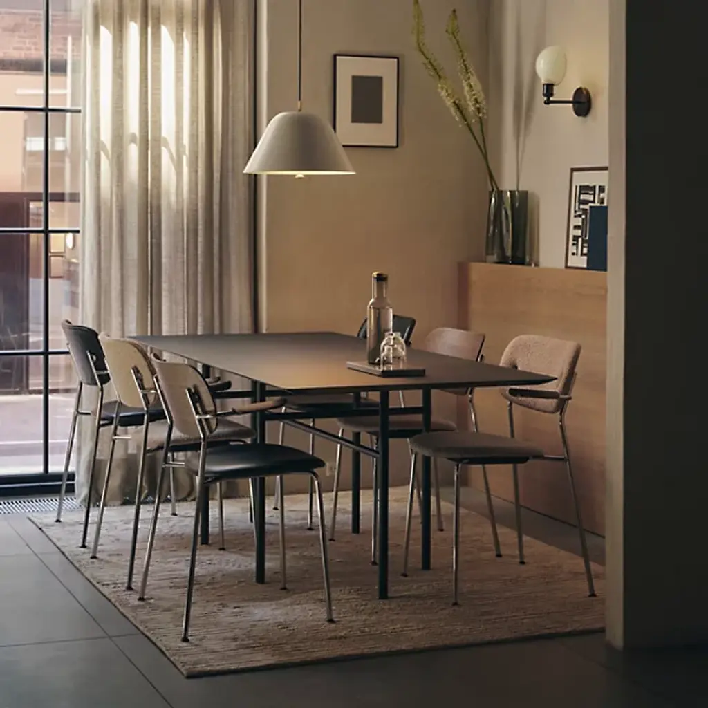 The Snaregade Rectangular Dining Table by Audo Copenhagen, formerly known as Menu, is a minimalistic, modern design from Norm Architects that was originally created for the home of Audo Copenhagen founder, Bjarne Hansen. Multi-functional and multi-purpose, the spacious tabletop features a handsome finish, revealing the natural variations found in its grain patterns, offering a functionally beautiful area to work at and gather around. A sturdy, simply styled, powder-coated steel set of legs make for a durable foundation and are artfully layered with one another to complete the clean, elegant look of this Scandinavian-style table.