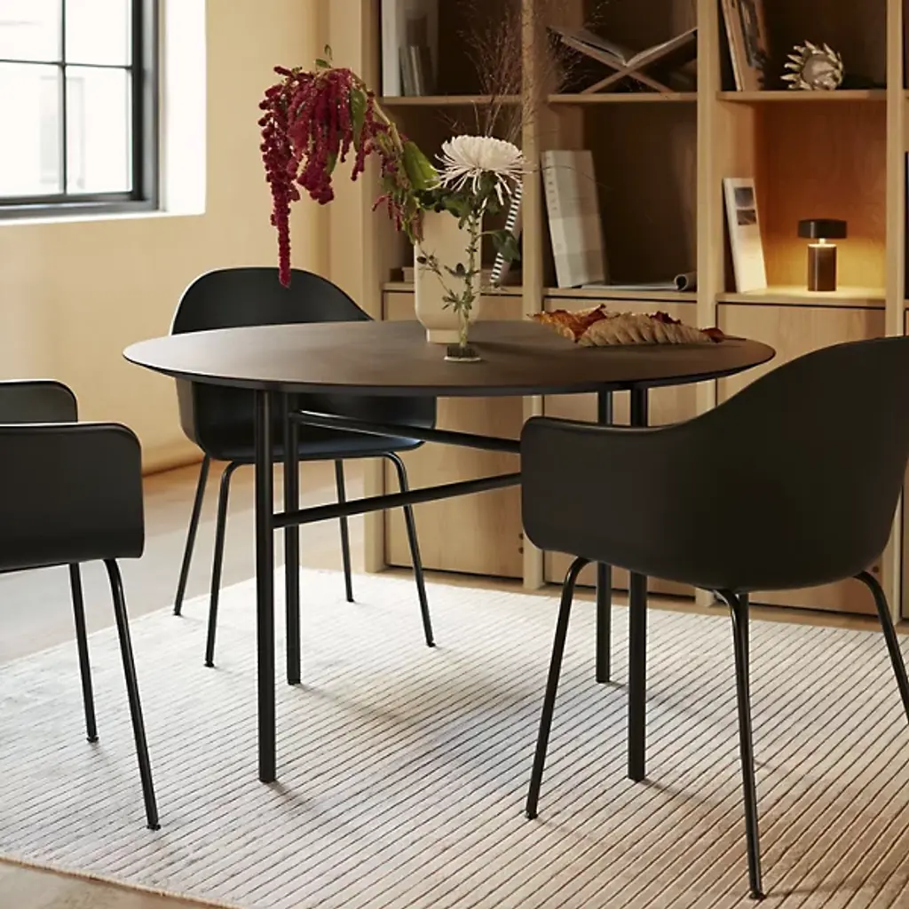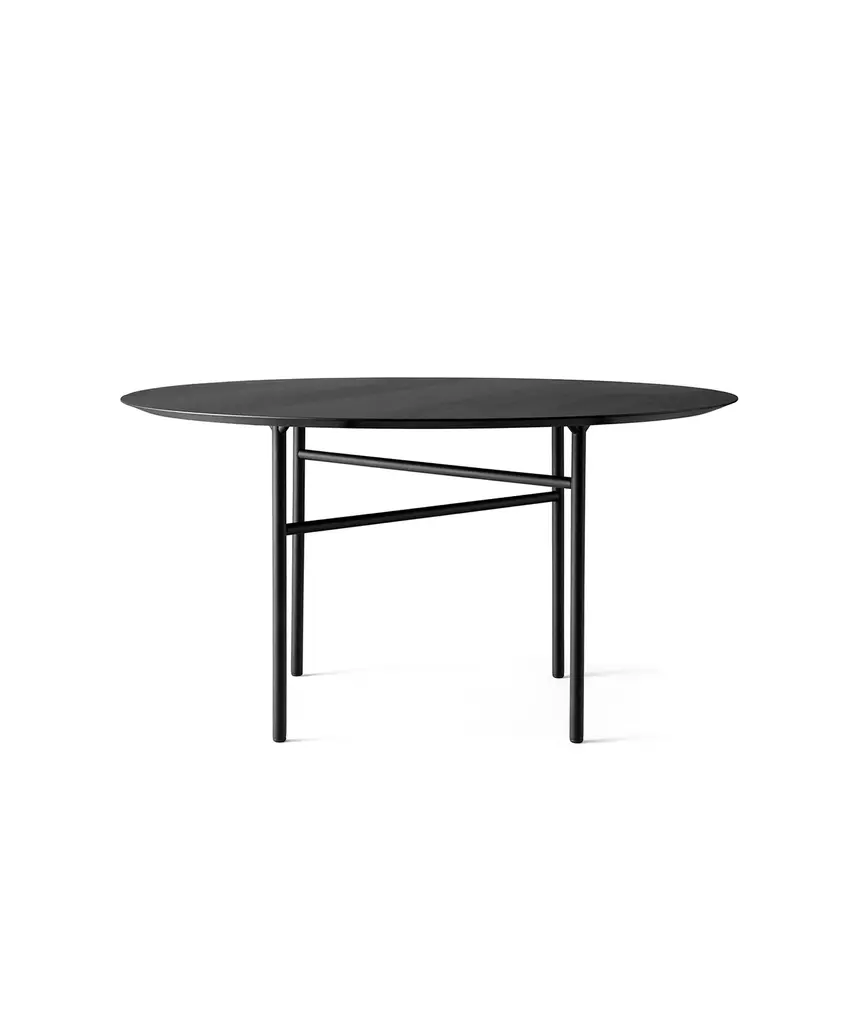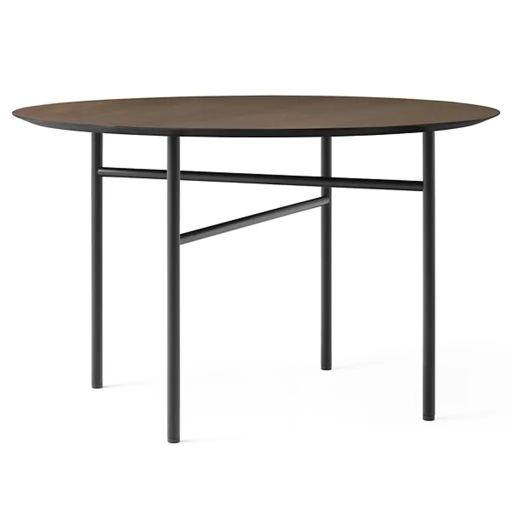 The Snaregade Round Dining Table by Audo Copenhagen, formerly known as Menu, brings rooms a multi-functional, modern spot to gather around. Originally created for the home of Audo Copenhagen founder, Bjarne Hansen, this Norm Architects design has a clean, elegant look that is defined by its beautifully functional nature. A smooth, wooden veneer tabletop is handsomely finished and perched above a set of sturdy, minimalistic, powder-coated steel legs, lending spaces a timeless look for dinnertime or as an additional workspace.