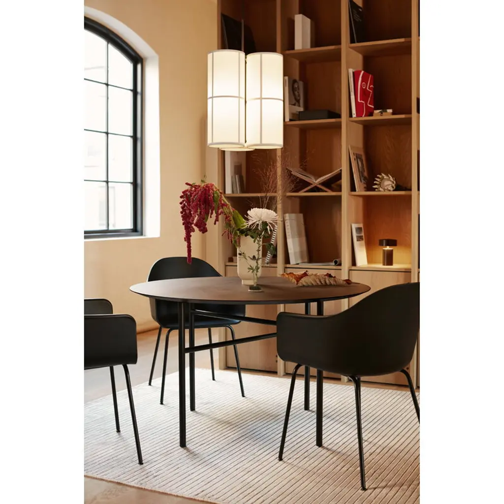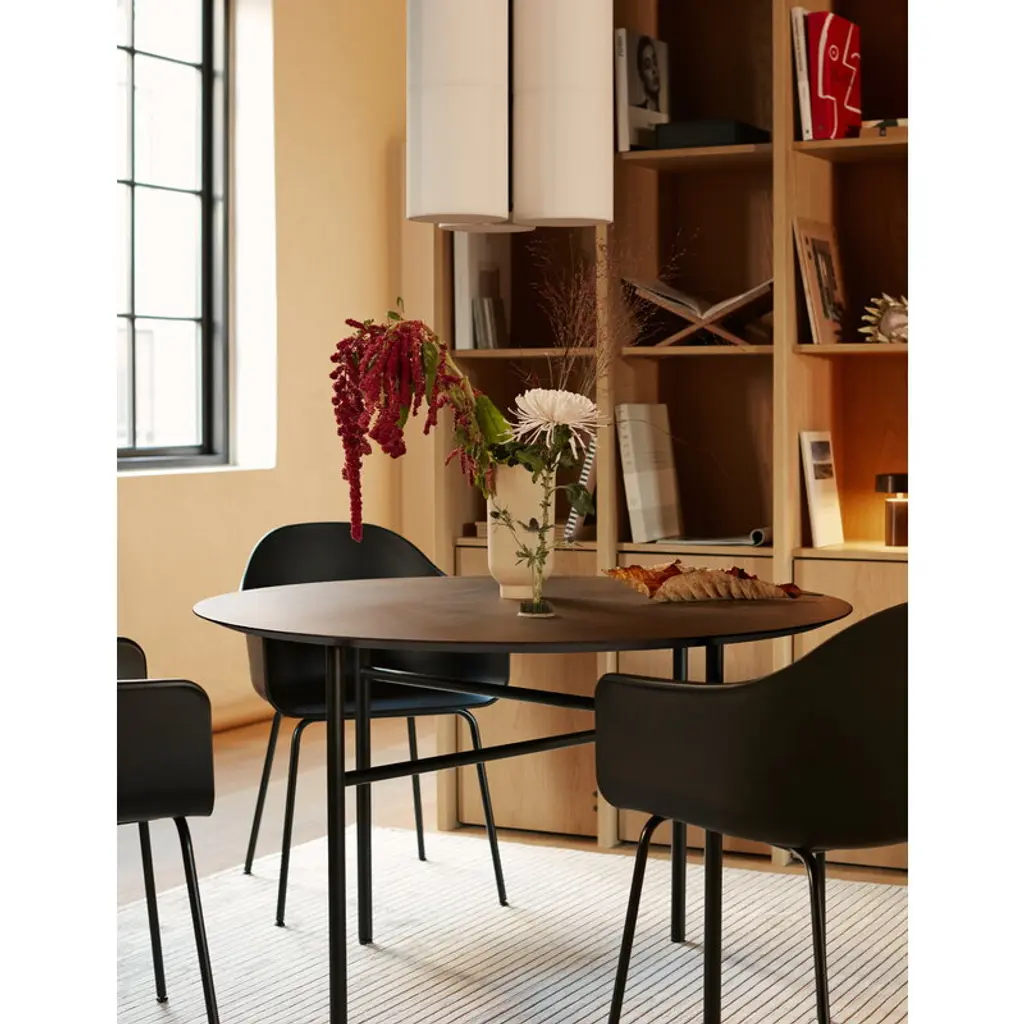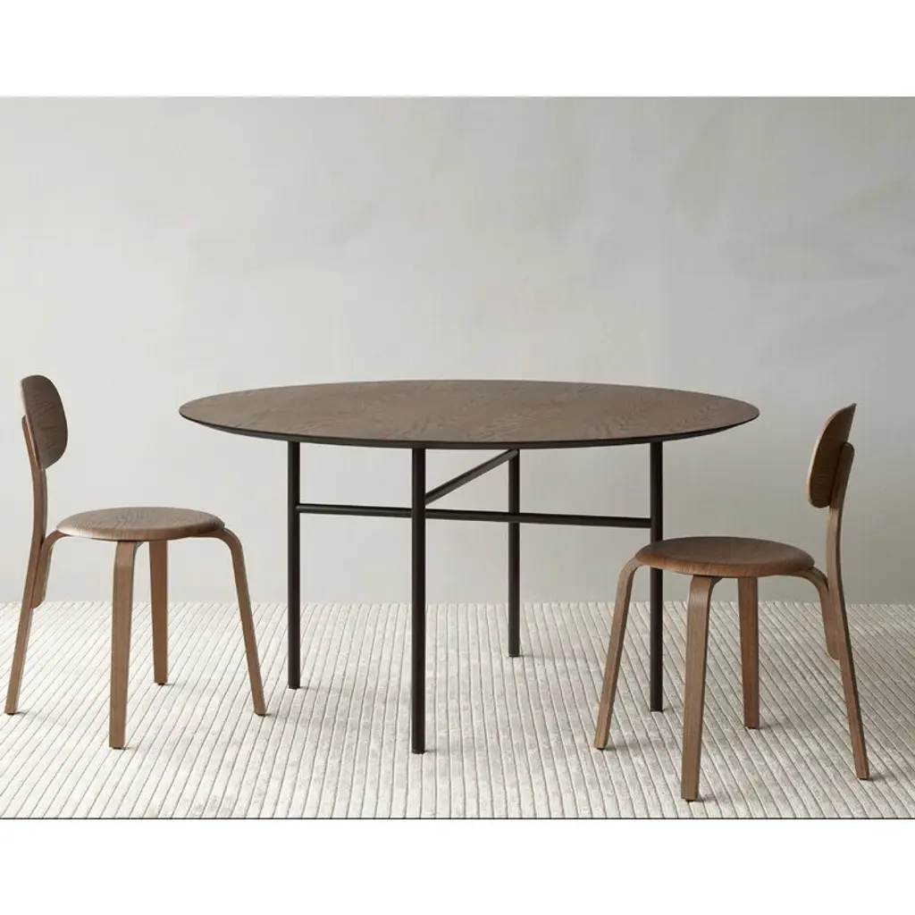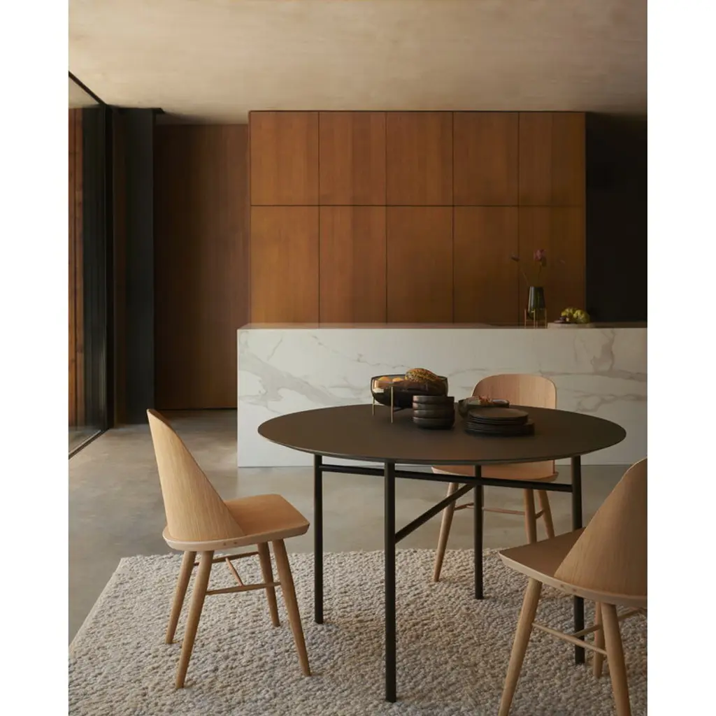 Audo Copenhagen’s Snaregade table has an elegant, graphic design that may well be a future classic. It features a simple oak veneer top and delicate steel legs that have been positioned to allow ample leg space. The dark-stained dining table can seat up to five diners, so surprise guests are also more than welcome! The Snaregade table will make a stylish work desk as well. Norm Architects designed Snaregade originally for the living room of Bjarne Hansen, the founder of MENU, as well as their own studio. After being used and tested for years, the attractive designs made their way into MENU's collection in 2016. The Snaregade collection was named after the street in Copenhagen where Norm Architects is located.