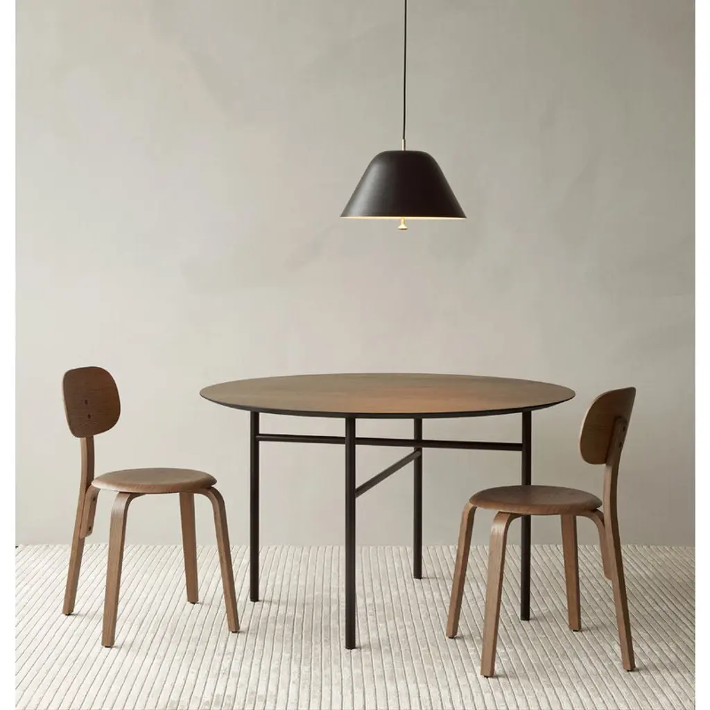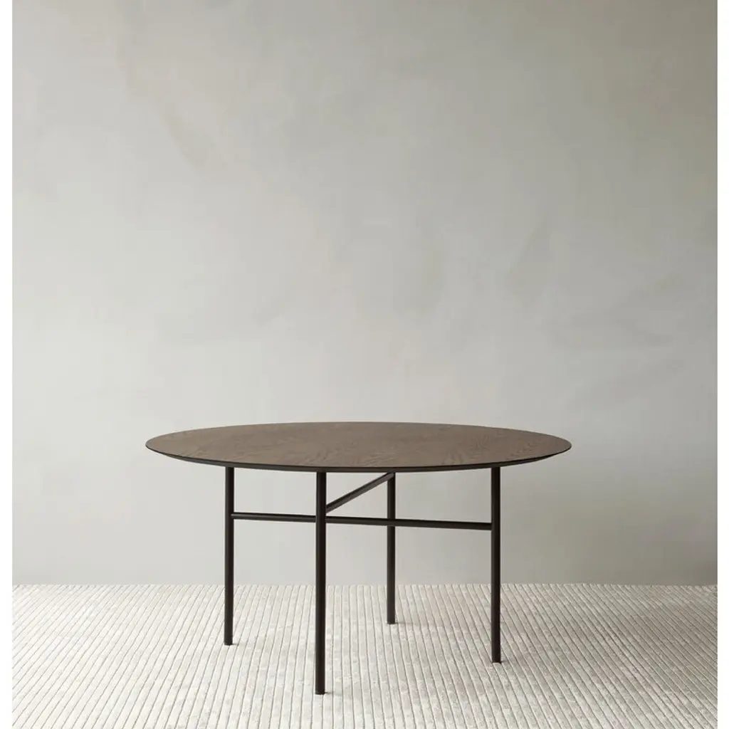 Audo Copenhagen’s Snaregade table has an elegant, graphic design that may well be a future classic. It features a simple oak veneer top and delicate steel legs that have been positioned to allow ample leg space. The dark-stained dining table can seat up to five diners, so surprise guests are also more than welcome! The Snaregade table will make a stylish work desk as well. Norm Architects designed Snaregade originally for the living room of Bjarne Hansen, the founder of MENU, as well as their own studio. After being used and tested for years, the attractive designs made their way into MENU's collection in 2016. The Snaregade collection was named after the street in Copenhagen where Norm Architects is located.