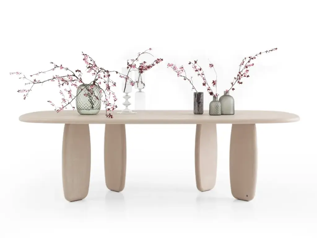 Soft lines and materiality meet in the Soap table, a piece of furniture that transforms the dining room into a place of conviviality and beauty. Its rounded, sinuous shapes evoke the softness of old-fashioned soaps, polished by time and use, for a tactile and visual sensory experience.Features8-seater dining table with top and legs in unique mauve marbled lacquered wood with a water-based finish.Haute Couture gets its inspiration from high fashion, where stitching, workmanship and materials are at the core of the design. Dressers are outfitted using hand-crafted leather, the furniture is embellished using precious marble, and the wood is selected on the basis of its grain. The synthesis of this collection is a modern line with a contemporary slant that is embodied in a luxury that is not overly flashy but grounded in sophistication. Timeless products made with high quality materials and handcrafted in Italy.