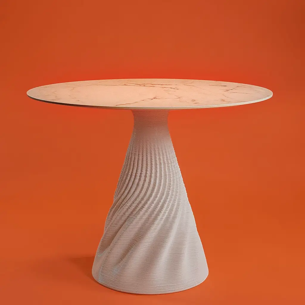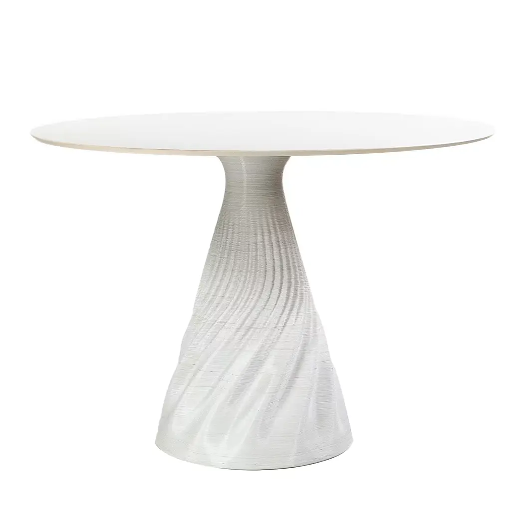 An innovative piece of furniture that represents the natural evolution of our traditions. This table was created with cutting-edge technology and produced with zero waste, always keeping in mind the health of our environment. It features a central leg characterized by a sleek, organic shape built through a 3D process. The material used for this piece is glossy white PLA (polylactic acid), a bioplastic derived from corn and wheat. The tabletop can be made of ceramic or fenix. At the end of its life cycle, it is completely recyclable. Please ask the Concierge for other informations.