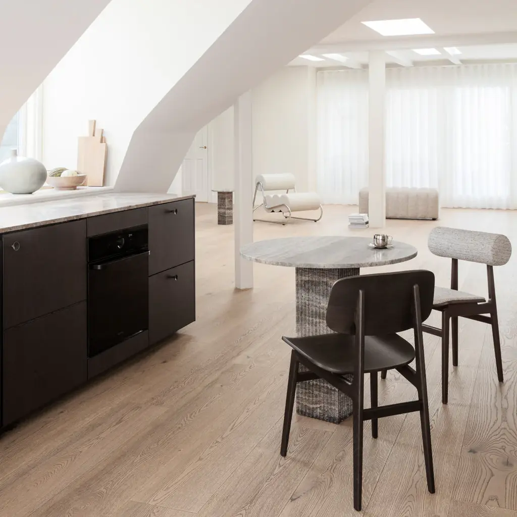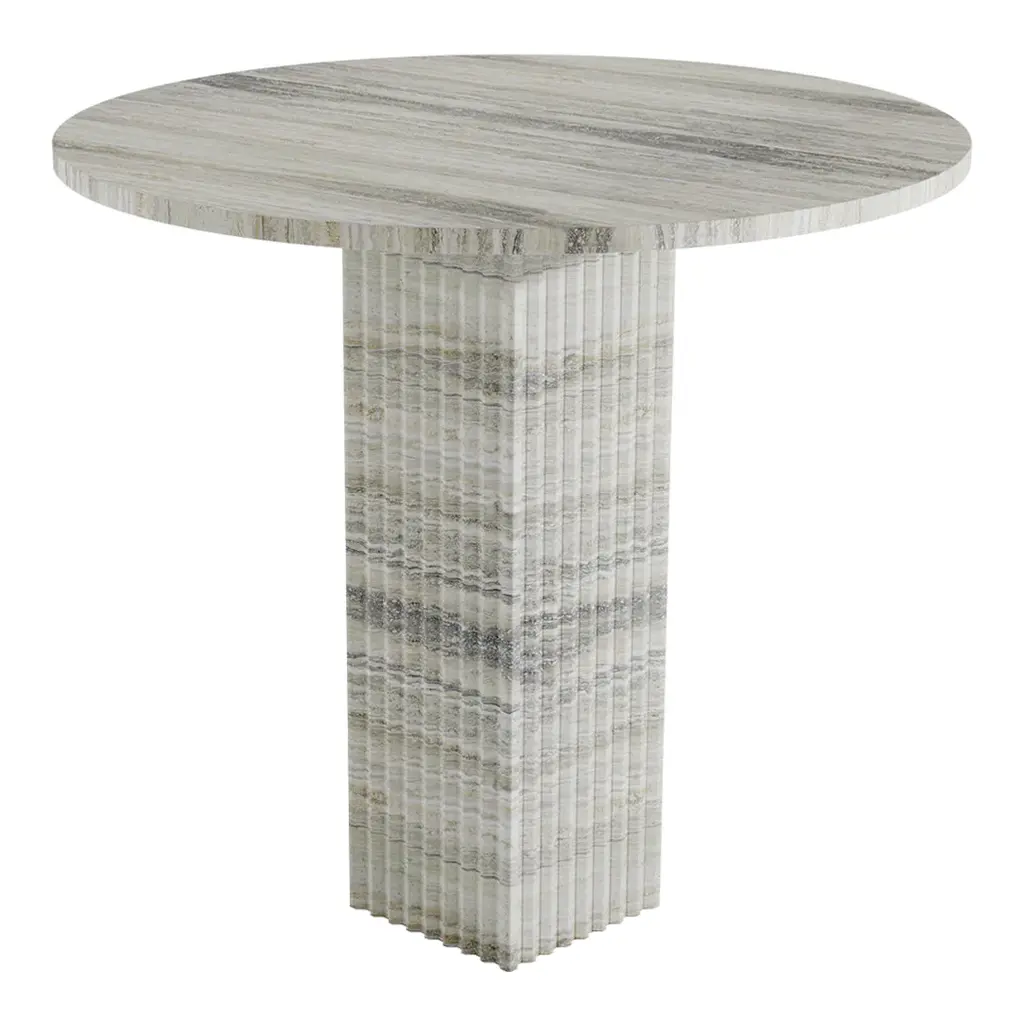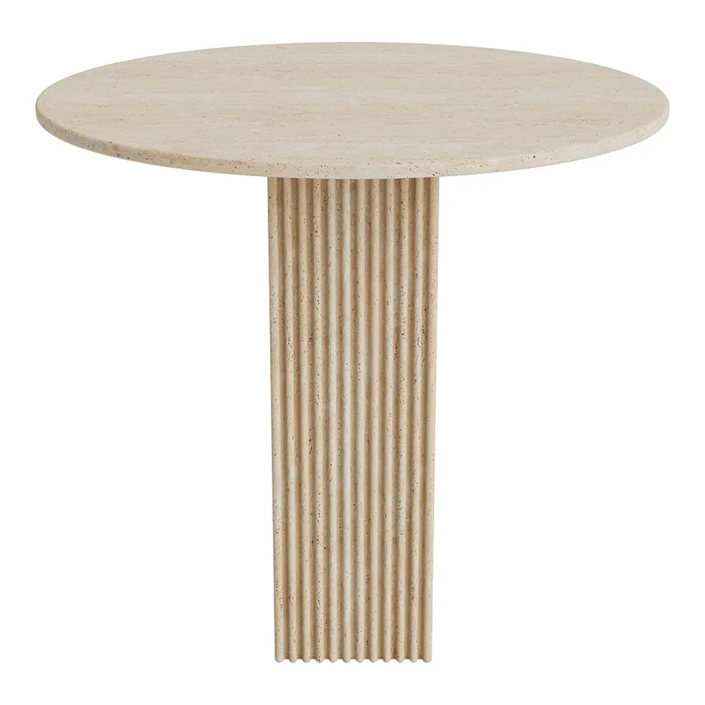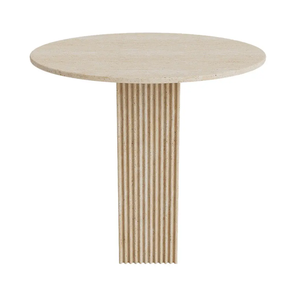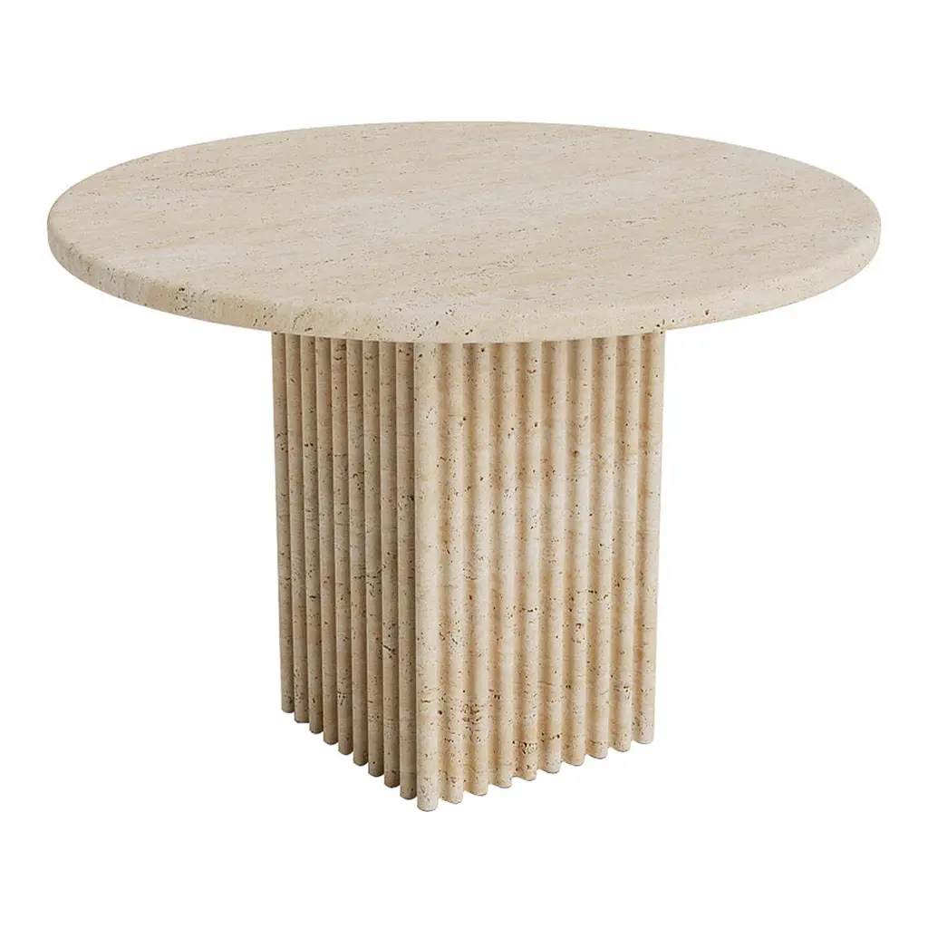 Rich on architectural references, the Soho collection reminisces architectural building facades to create a vertical and slim table design. The fluted surface of natural stone adds a tactile feeling, while shadows changes depth and character of the stone surface throughout the day. Soho is made from travertine with a beautiful natural surface of small holes and incorrections. Made from travertine plates, the table is still lightweight and easy to move around.