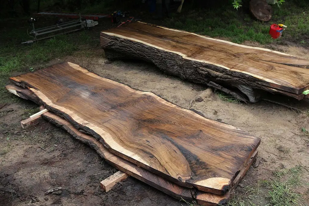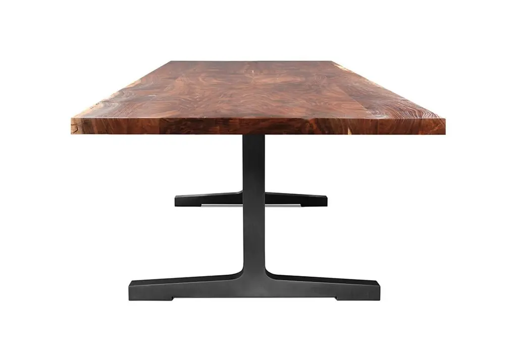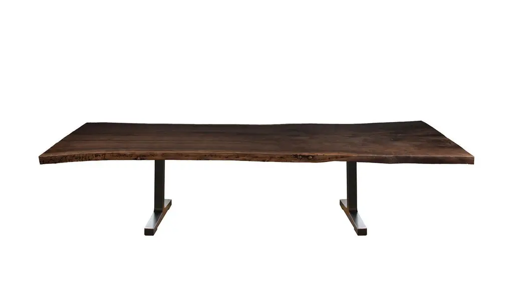 Soho Dining Table With Blackened Steel Legs And Live Edge Walnut Slab Top
