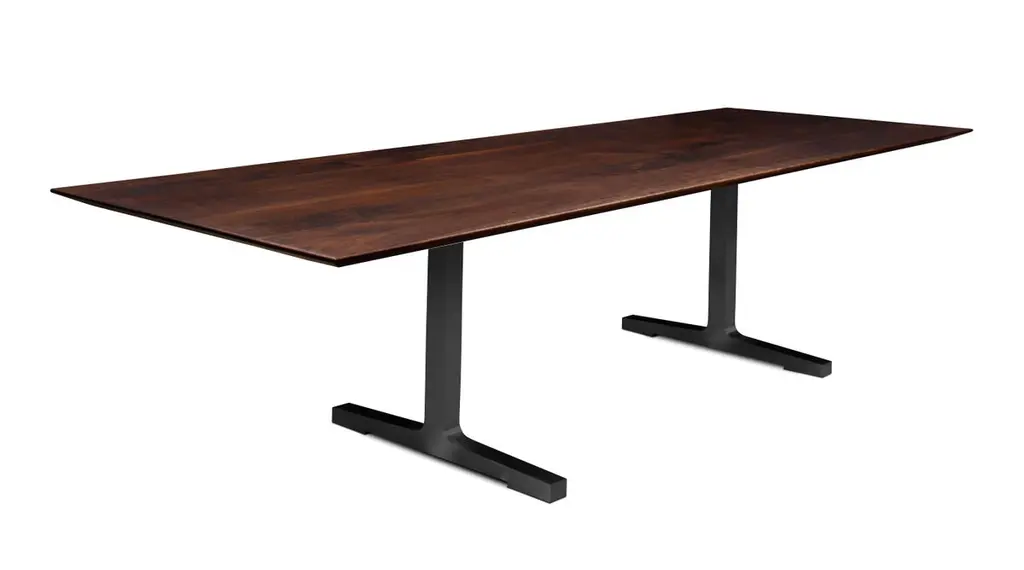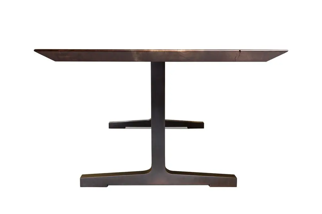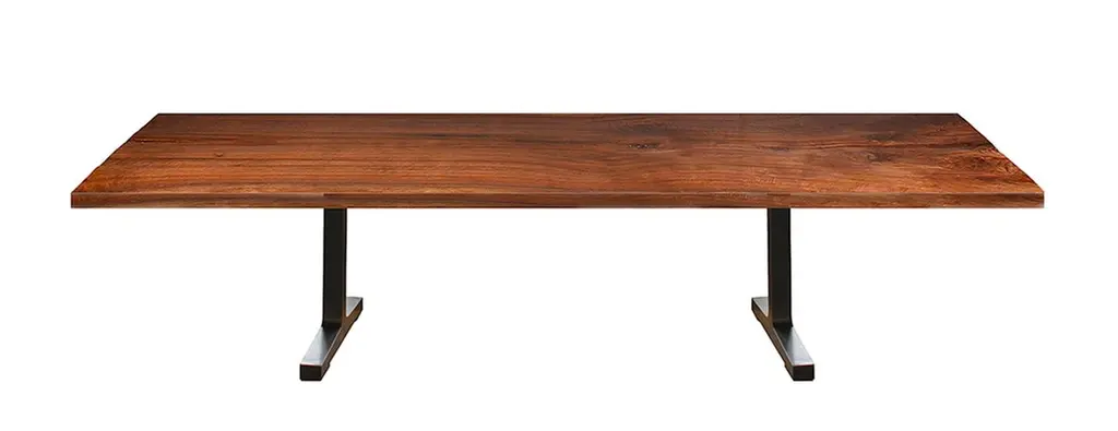 The Soho dining table captures the essence of Studio Roeper's signature style: the warm, organic nature of the live edge Claro Walnut slab top matched with clean, contemporary lines of the blackened steel legs. This design is versatile in it's ability to blend into any interior style, ranging from traditional to modern.The wood top is finished with a silky smooth hand-rubbed oil finish which begs to be touched. We have one of the largest inventories of Claro Walnut slabs in the world! Available lengths from 8ft to 16ft.Please inquire for custom slab sizes.
