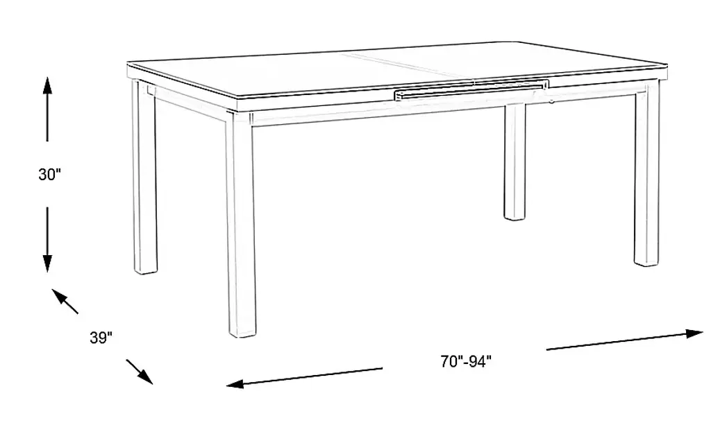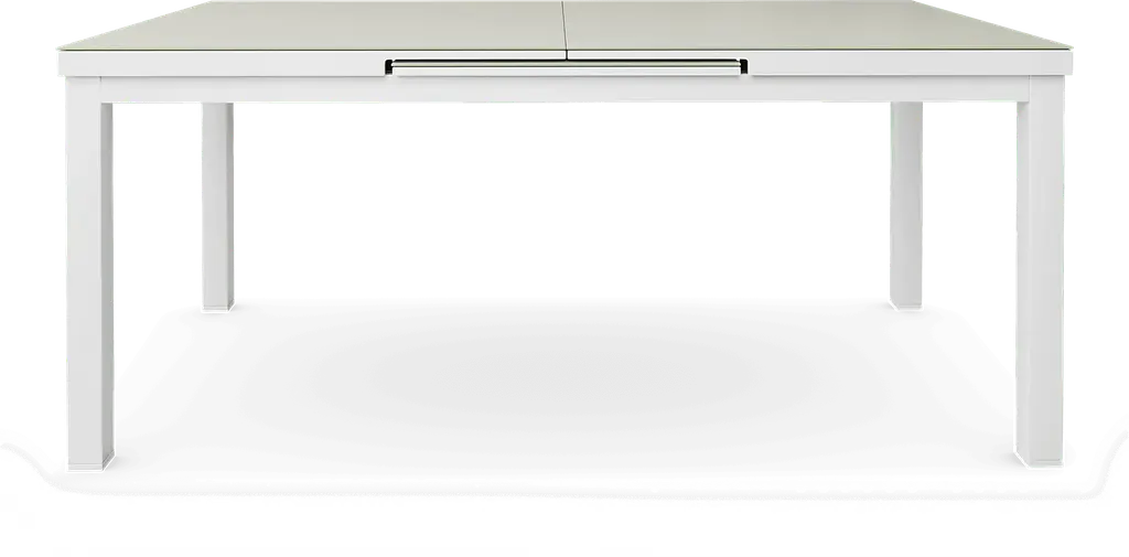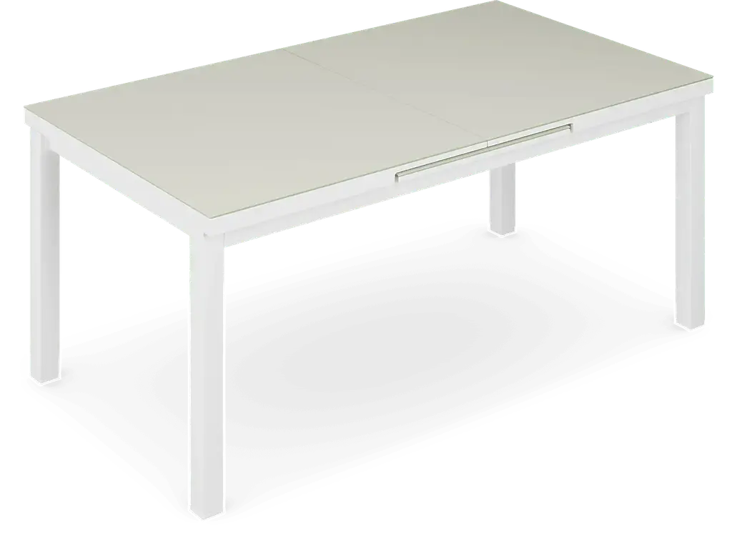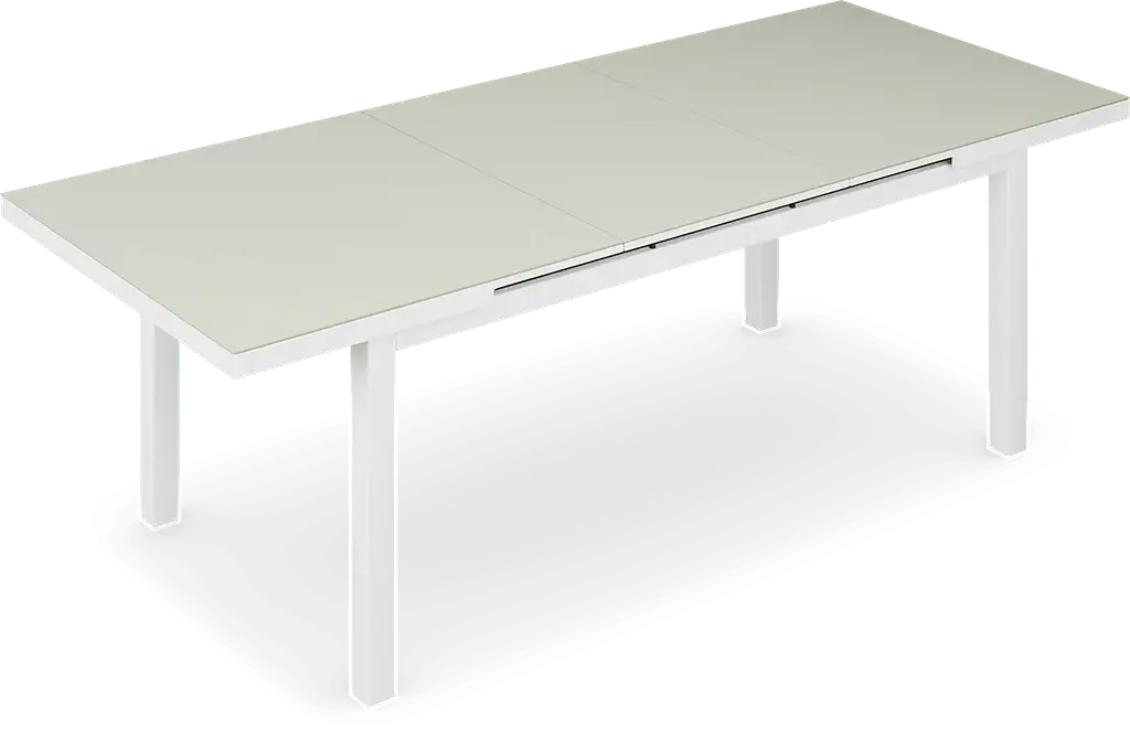 Enjoy casual mealtimes and transform your outdoor space into an entertainment hub for friends and family with the Solana dining table. Simply extend the table from 71" to 94" to expand the guest list. A sturdy aluminum frame in a high gloss white finish has a streamlined look with a casual feel thanks to the linen textured tempered glass top that is easy to wipe clean and resistant to finger prints and smudges. Wipe clean with mild soap and water.