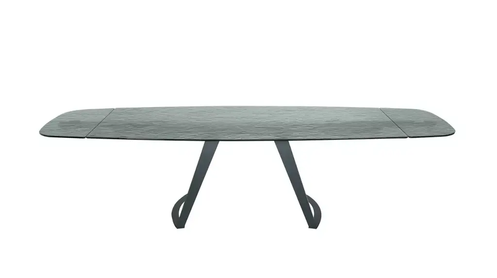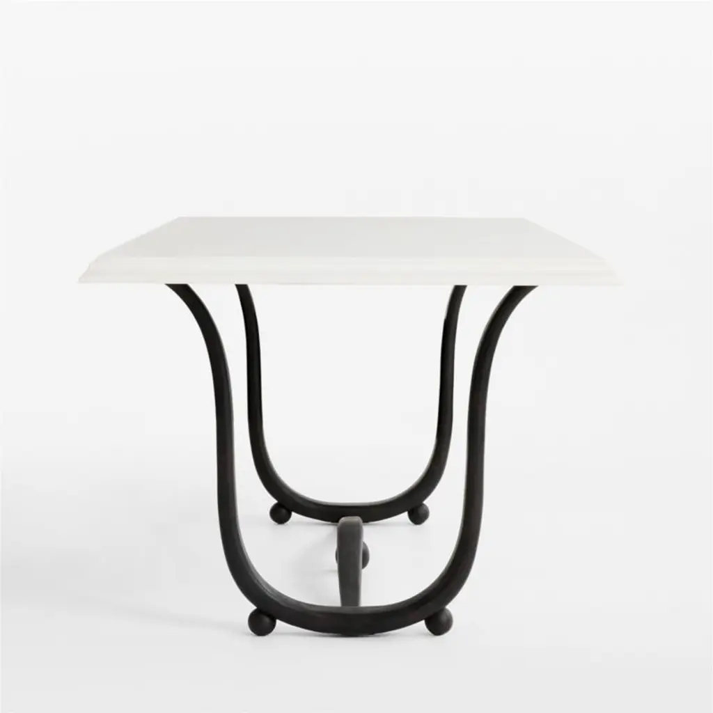 Whether it's the flow of the marble veining or the sweeping lines of the metal base, Solara graces the dining room with dynamic lines and elegant rhythm. The base loops U-shaped legs with spherical feet, all crafted of aluminum with sand-cast texture and a matte black finish. Carved with a notched edge, the honed Kari marble top presents a broad satin-finished surface to show off the stone's ivory, beige and white color variations. This striking table seats up to six and pairs beautifully with any of our dining chairs.Introducing The Collected Home. Our exclusive new collaboration with interior designer Jeremiah Brent is rich with bespoke details and bold individuality.