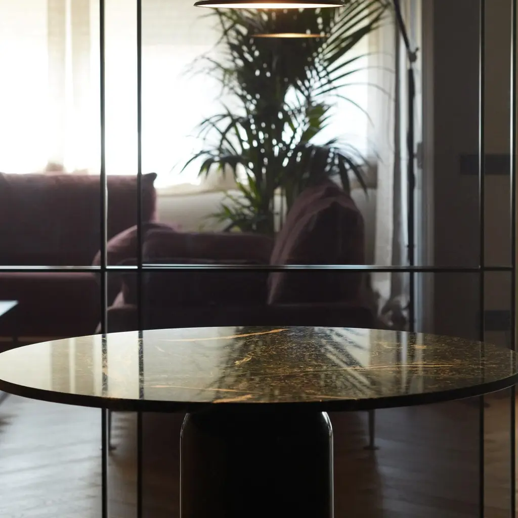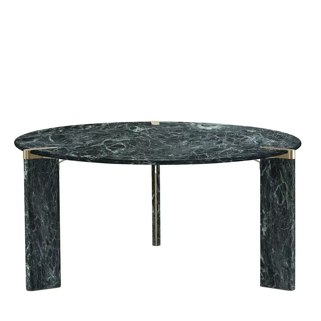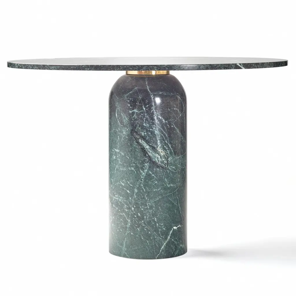 Solid Green Macael Marble, Round Dining Table With Brass Detail, Roser