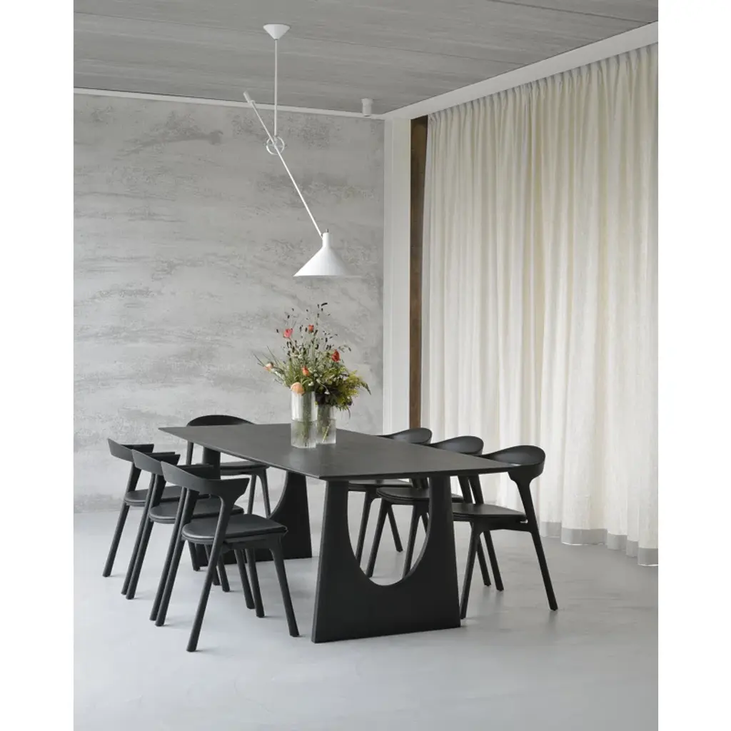 With enriched shapes and unexpected details, the Geometric solid oak dining table is a statement item, equally at home in the dining room or workspace. Luxury comes with its length, which is offset by softened edges and natural lines. Interesting shapes are in play to add volume and practical comfort.