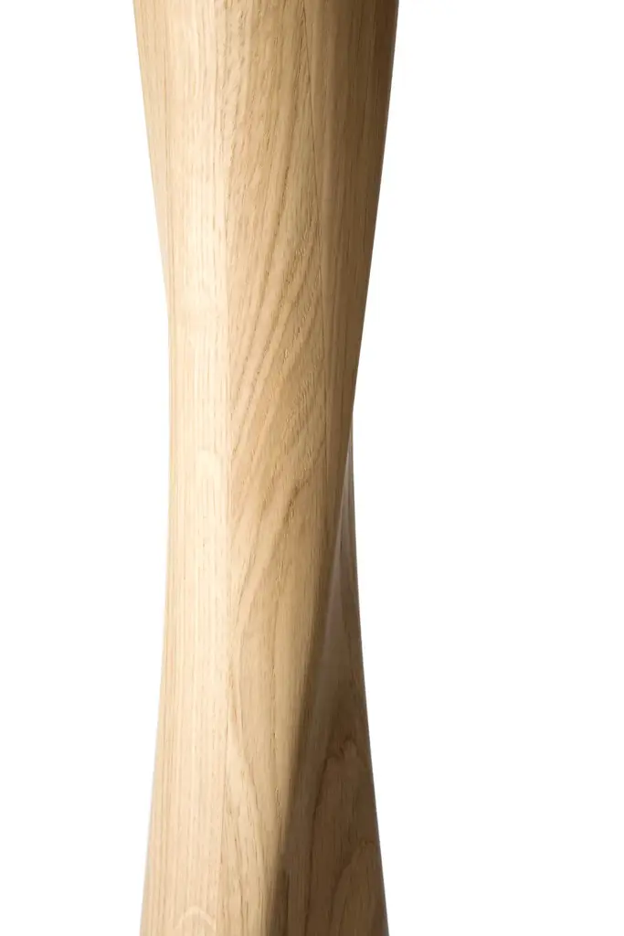 Airy with subtle complexities, the Torsion dining table incorporates advanced woodworking techniques to create a light solid oak table top with a torsade base of sculptural elegance.
