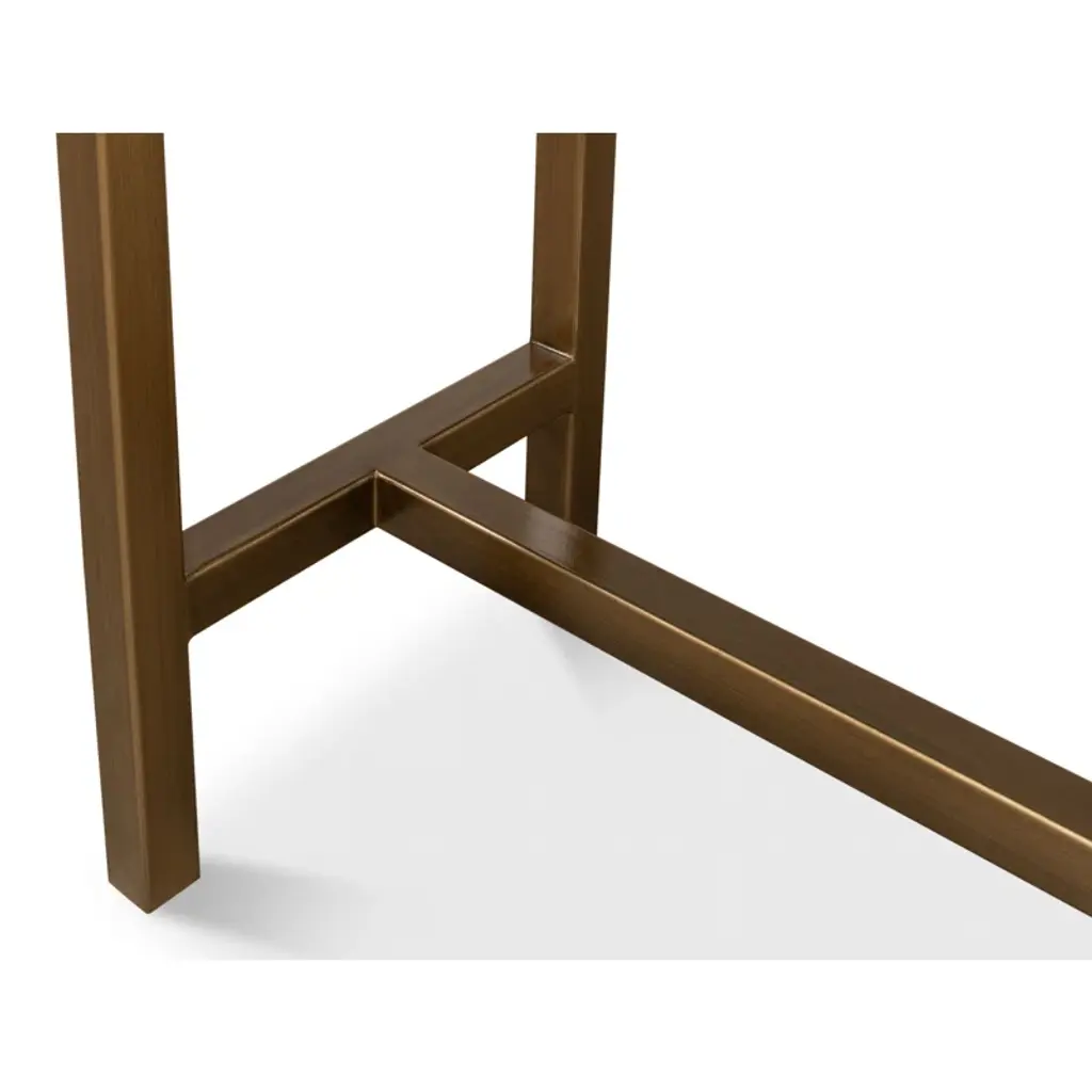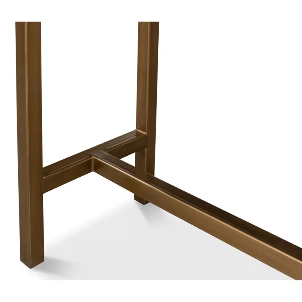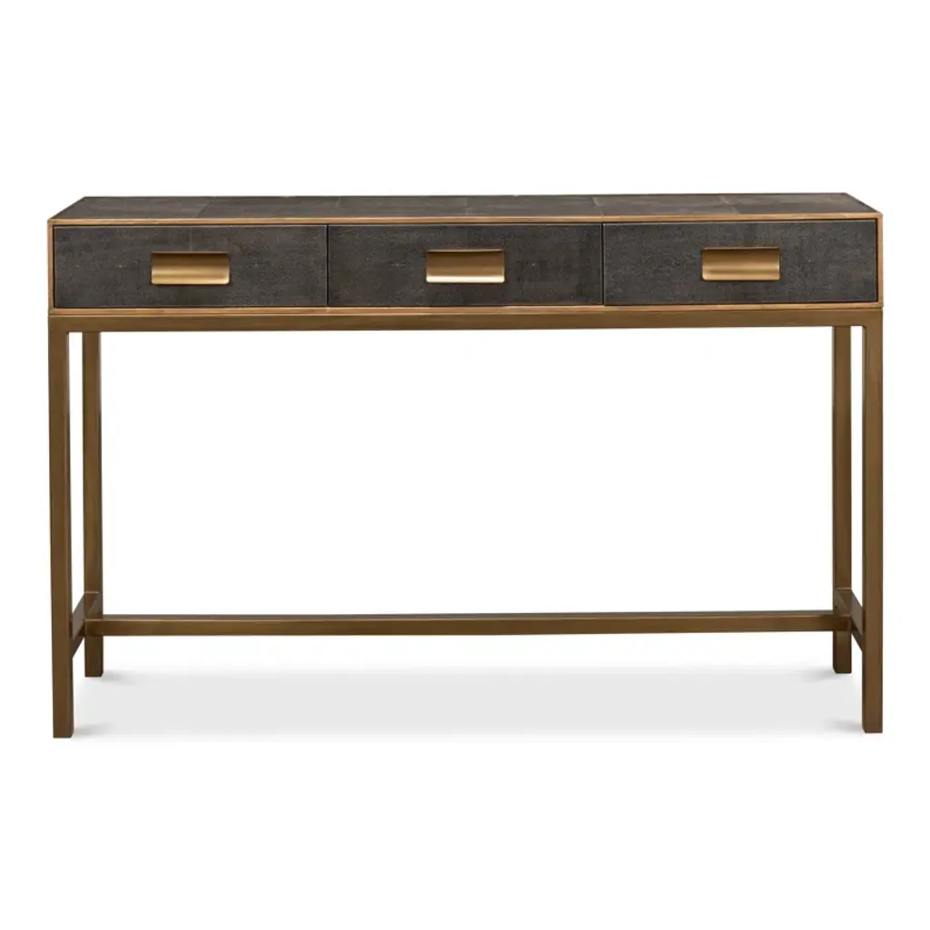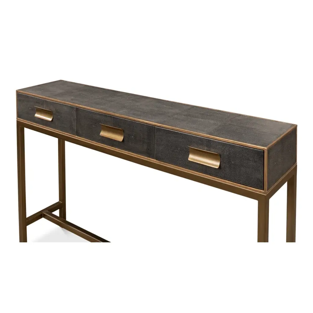 Bring a softened industrial look to the media room, dining space, or entryway with a simple black-finished iron console table featuring bronzed iron hardware for modernity. Dual drawers and lower shelving add bonus storage space.