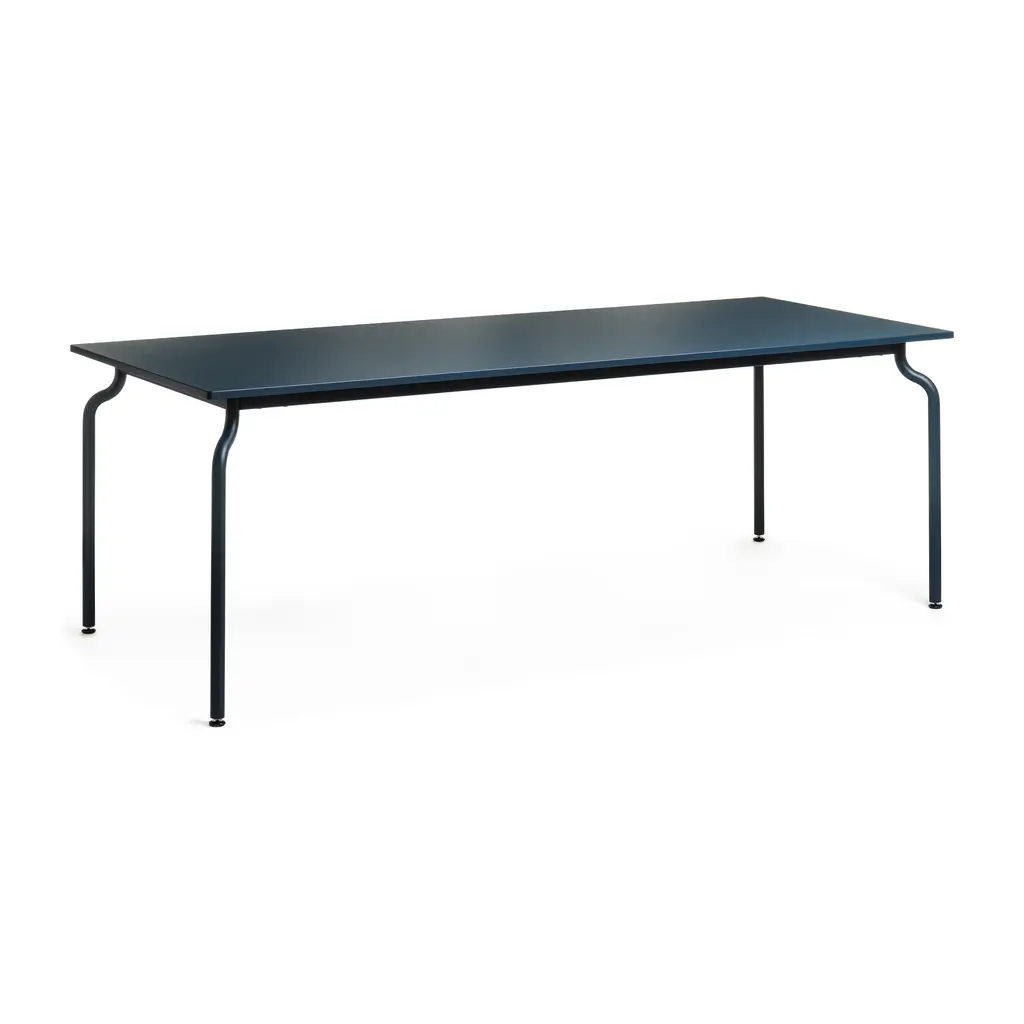 Simple, yet sophisticated, the South Outdoor Rectangular Steel Dining Table from Magis is a stunning addition to your favorite indoor and outdoor spaces. Boasting a spacious tabletop and sinuous, adjustable legs, the rich powder coating of this durable dining table ensures frequent use in outdoor spaces. Top with your favorite linens and serveware for a gorgeous garden party or casual family meal. Highlights