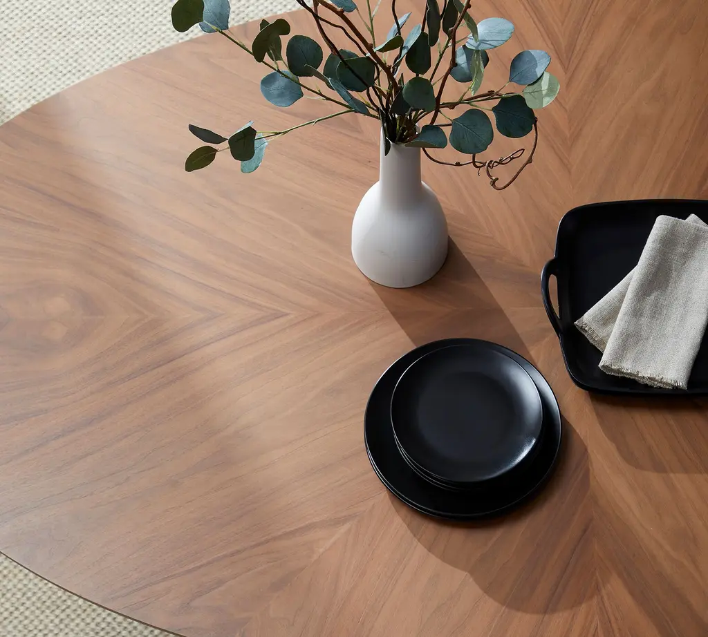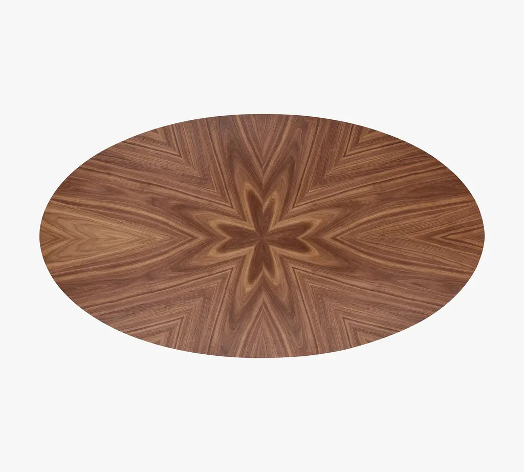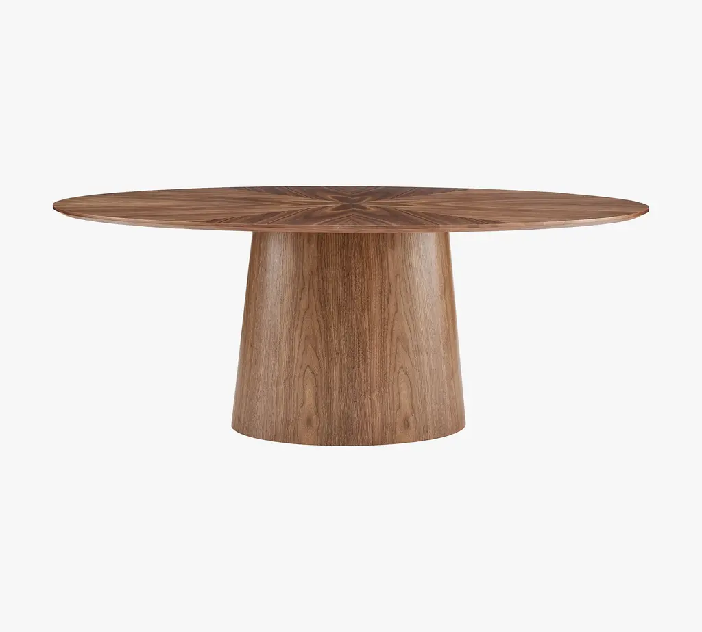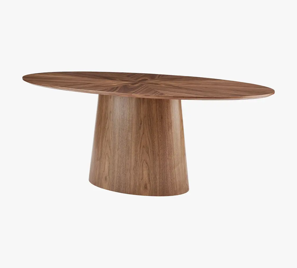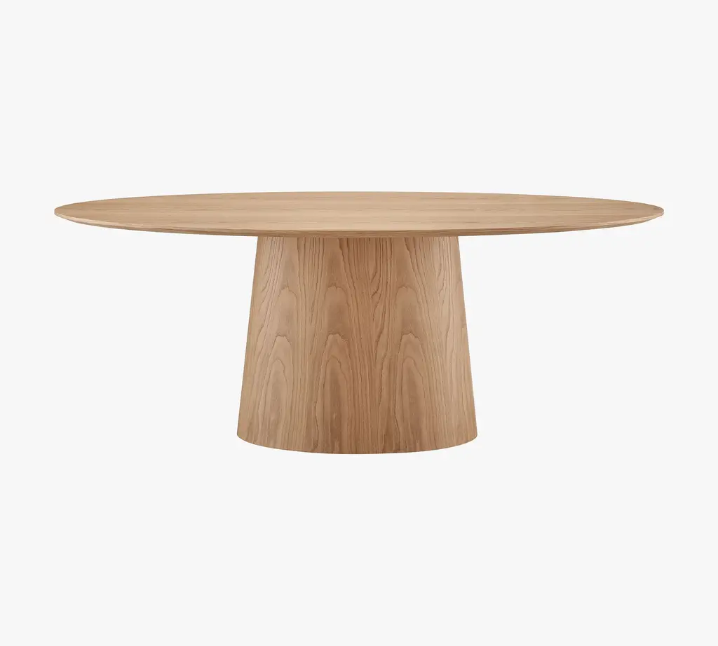 Create a striking modern focal point in your dining area with our South table. A wide oval pedestal base crafted from ash veneer anchors the design, playing sturdy counterpoint to the svelte plank top. Pair with upholstered seats for textural contrast in an urban loft or modern farmhouse.